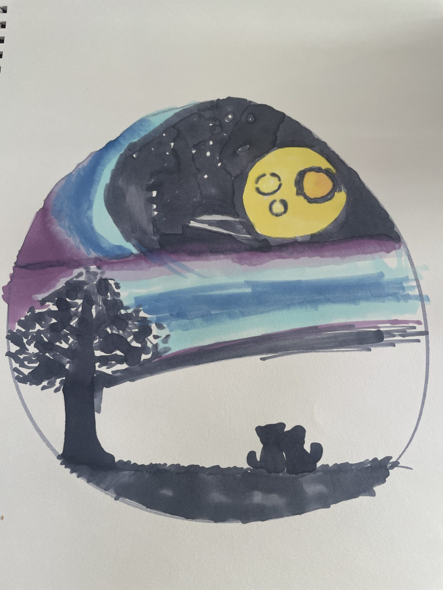 りおせんせい 先生2024年4月16日 9:05 AM シルエットでの表現がとってもオシャレな作品だね😆✨ 猫ちゃんたち、2匹で幻想的な夜の景色を眺めているのかな?🌃🌙 夜空がきれいな色だね🩵 こんな夜空、見てみたい〜🥹💕 丸い枠の中に描いているのも面白いアイディアだね💡 ログインして返信する ↓