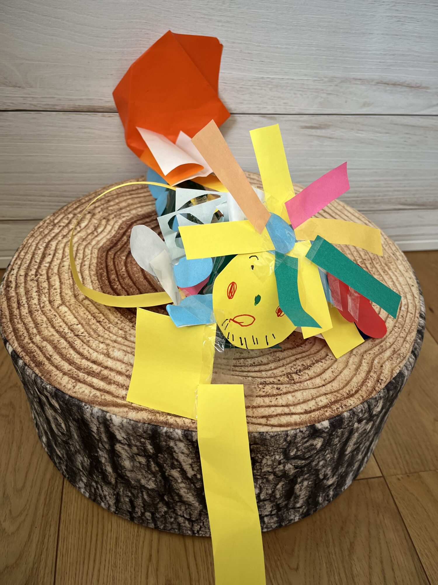 はははは、すごい おじいちゃんいもむしだなあ! あたまのたいようがかっこいいよ!