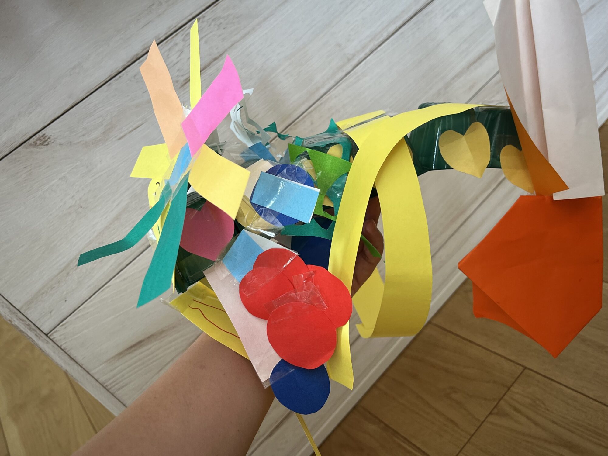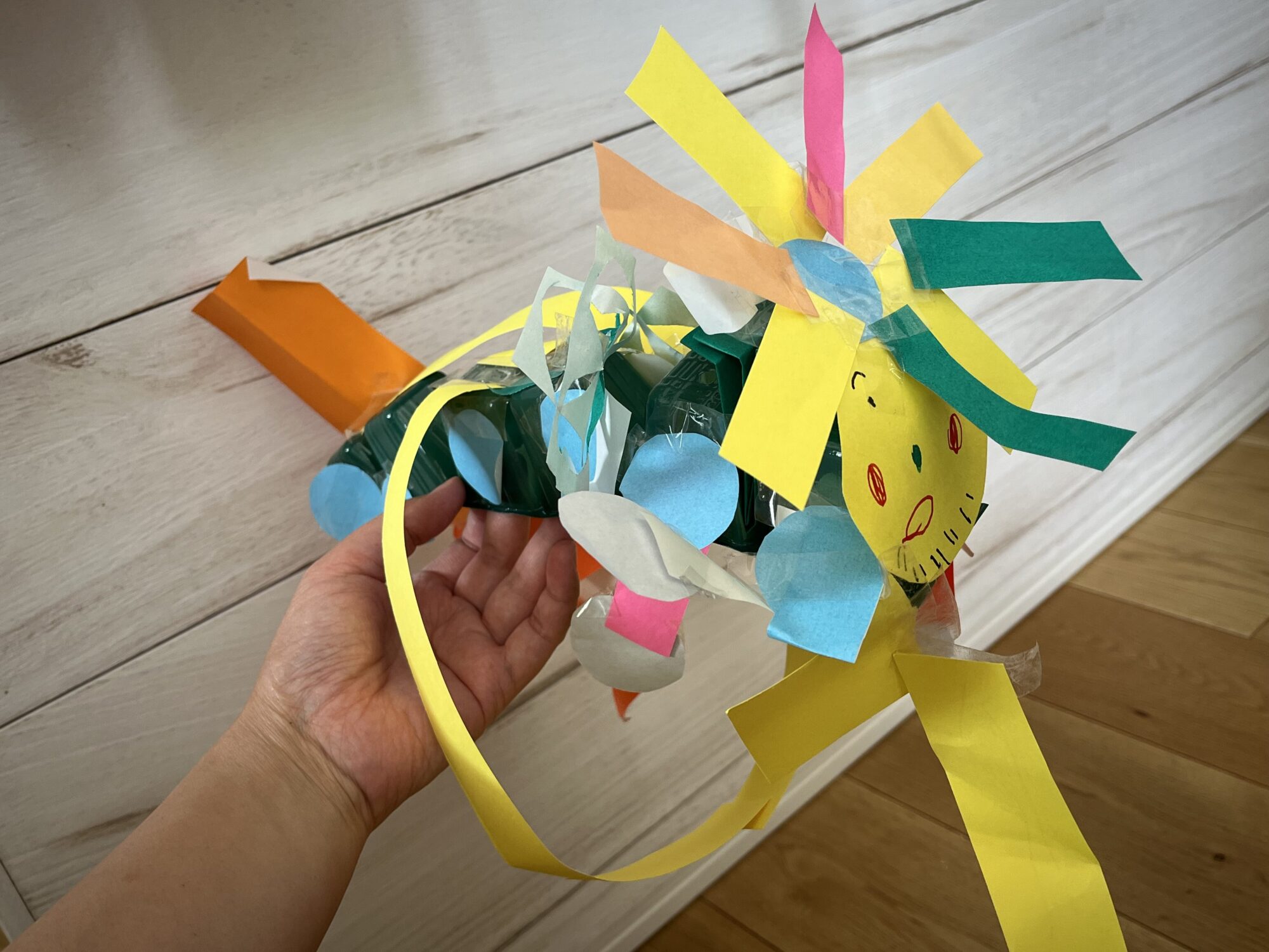頭に太陽が付いてる おじいちゃんイモムシだよ。