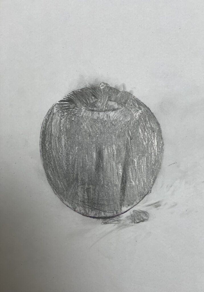 上の絵は、積極的に色を載せているのが良いデッサンだな、と思いました🍎上の枝の部分の質感もぱきっとしている感じが伝わってきます