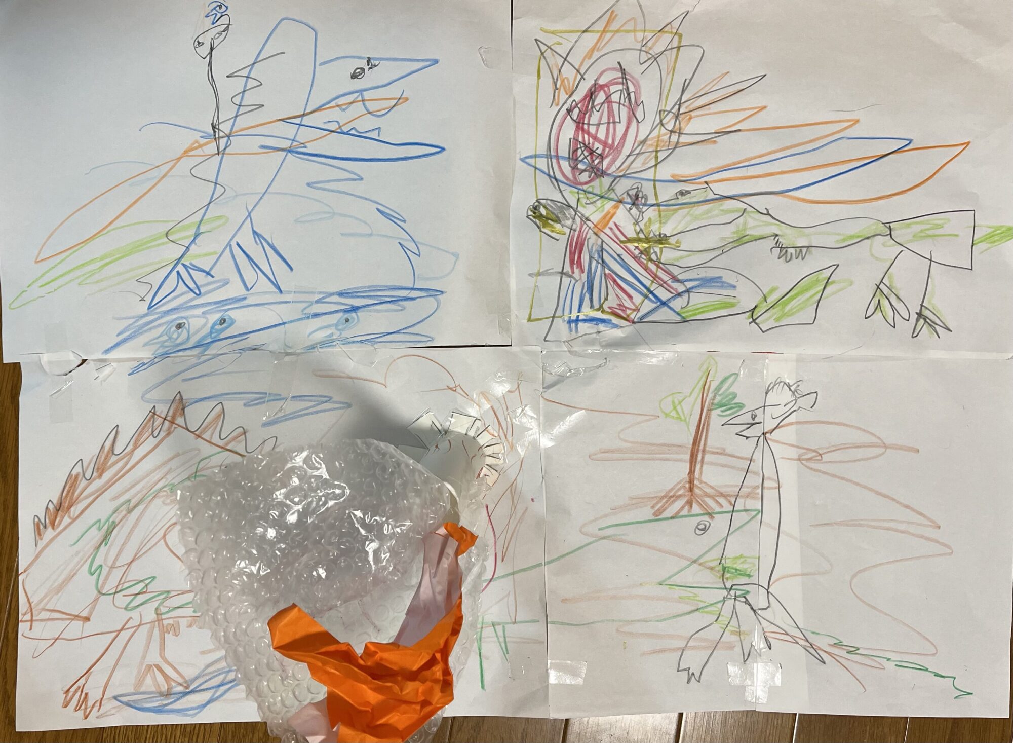 すごい!頭に浮かんだ事をどんどん描きながら色も選んで、すごいかっこいいですね!