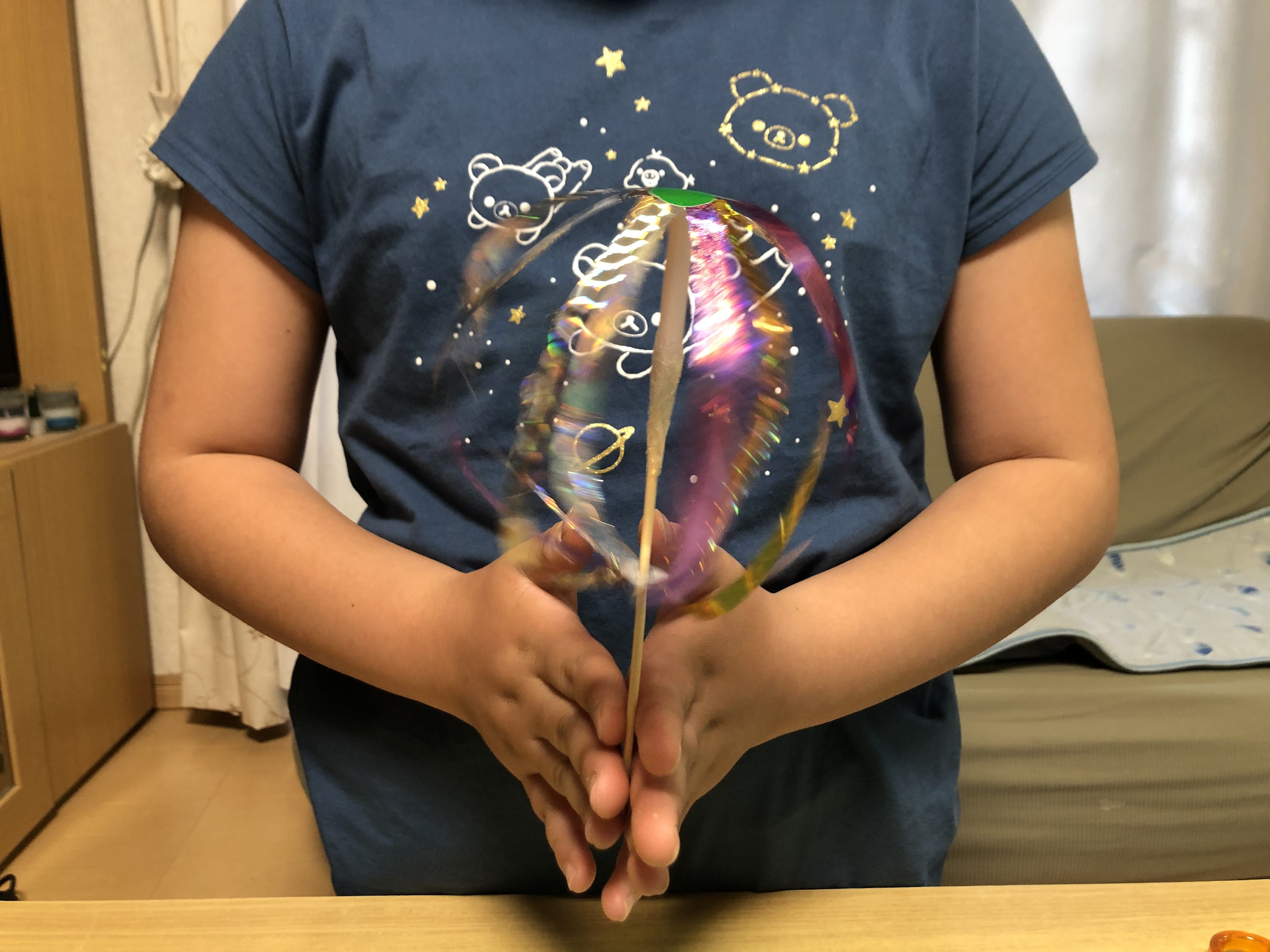 はづきせんせい チャイルドアートサポーター2020年4月27日 6:33 PM わあ〜〜〜 回っているところ、すっごくキレイだね!! 偶然かもしれないけど、あかねちゃんのお洋服のリラックマたちが、 シャボン玉のキラキラの中を泳いでいるみたいに見えたよ!! ログインして返信する ↓