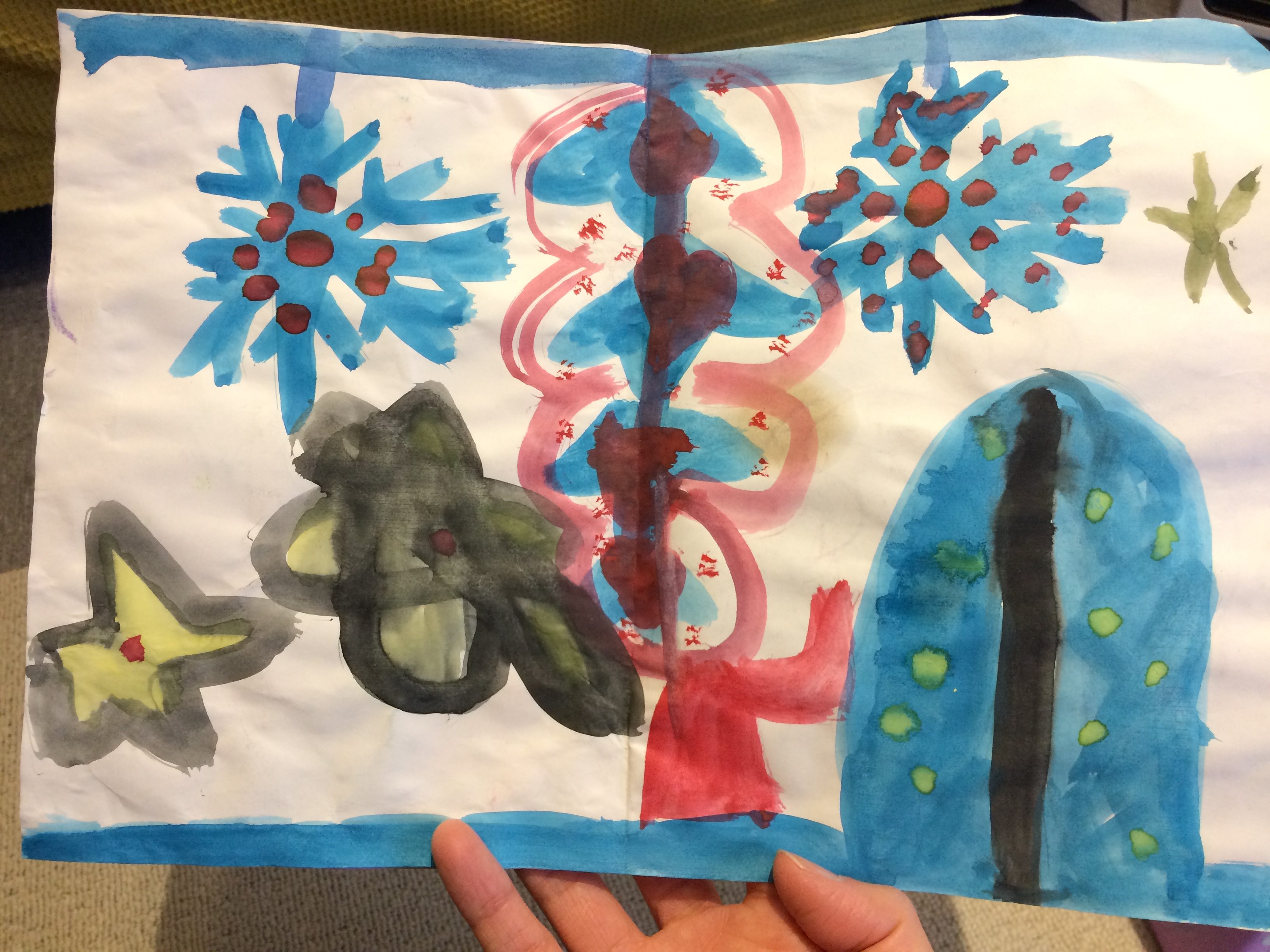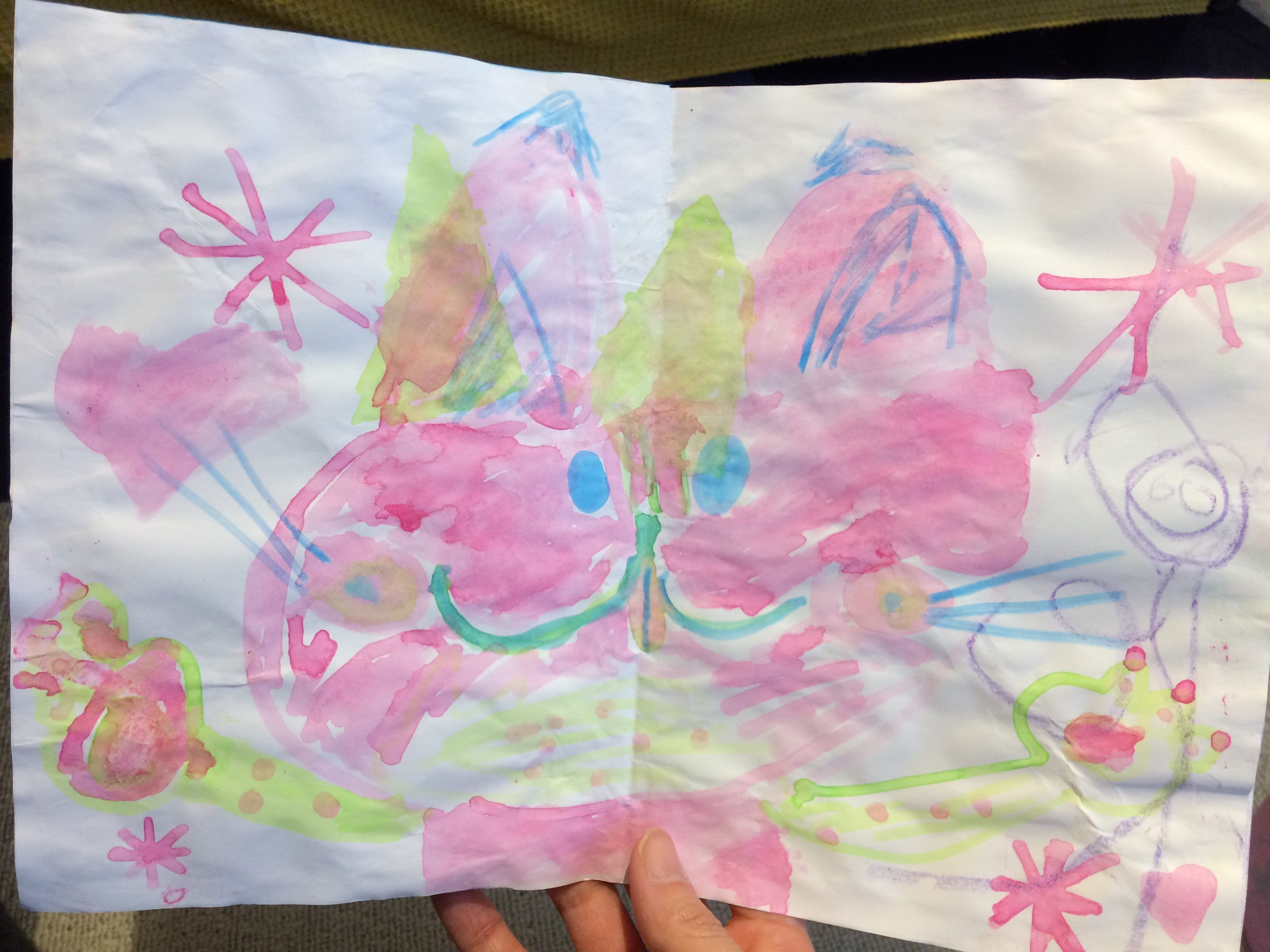 発想画にならなかったとのこと、しかし絵の具を楽しんでくれていたみたいで