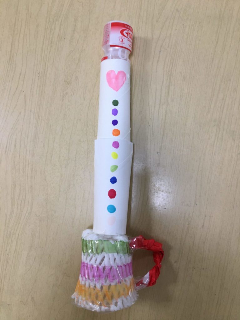 取手をつけて持てるようにしたり、ステッキがのびるように作りました!