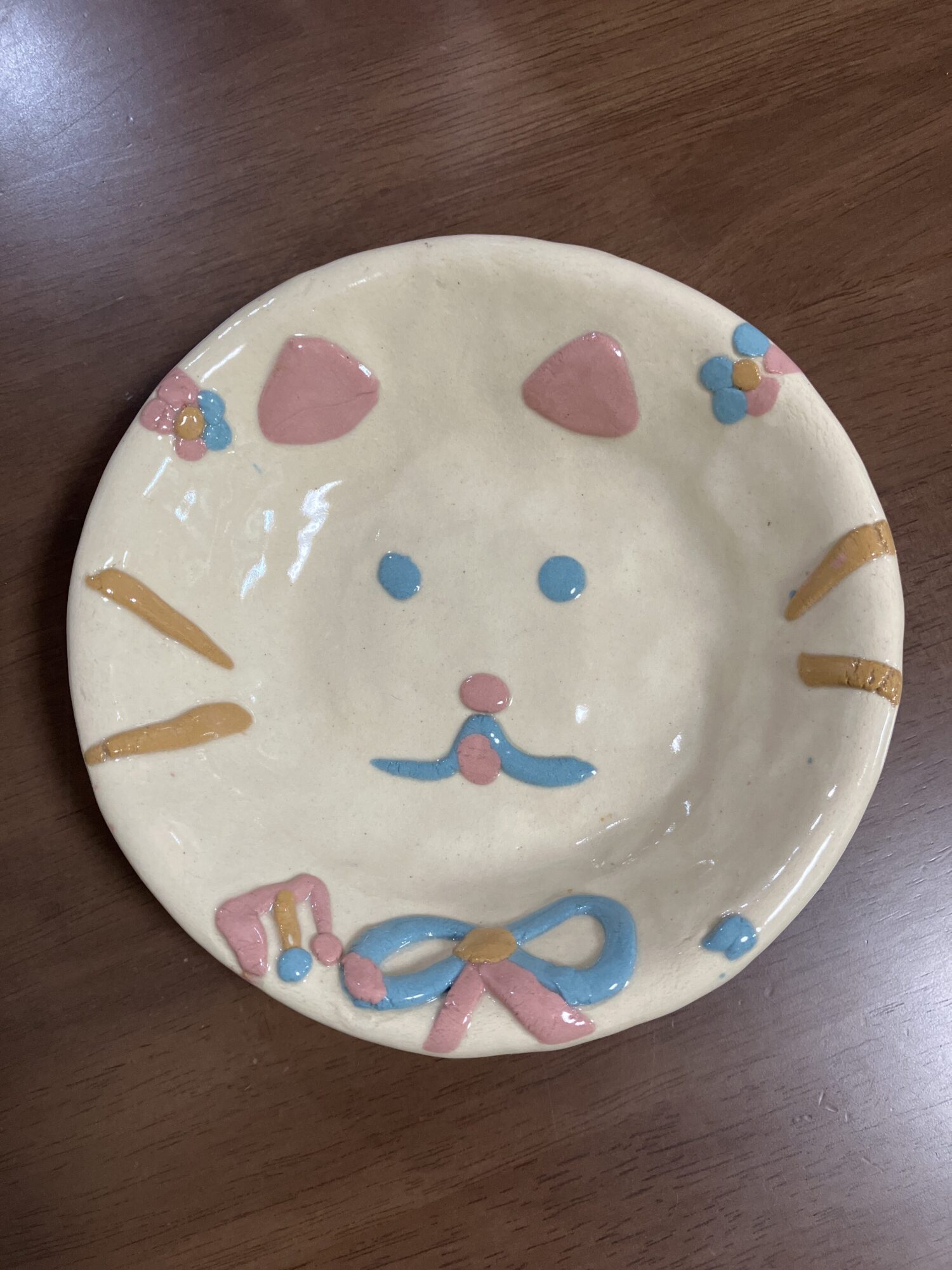 初めての陶芸。粘土を平に広げるのが大変だったけど、色粘土でいろんなかたちをデザインするのが楽しかったです。たくさん使いたいです。