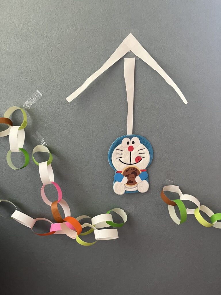 輪っかのかざりもいっこいっこ作ってつなげて楽しいね〜!