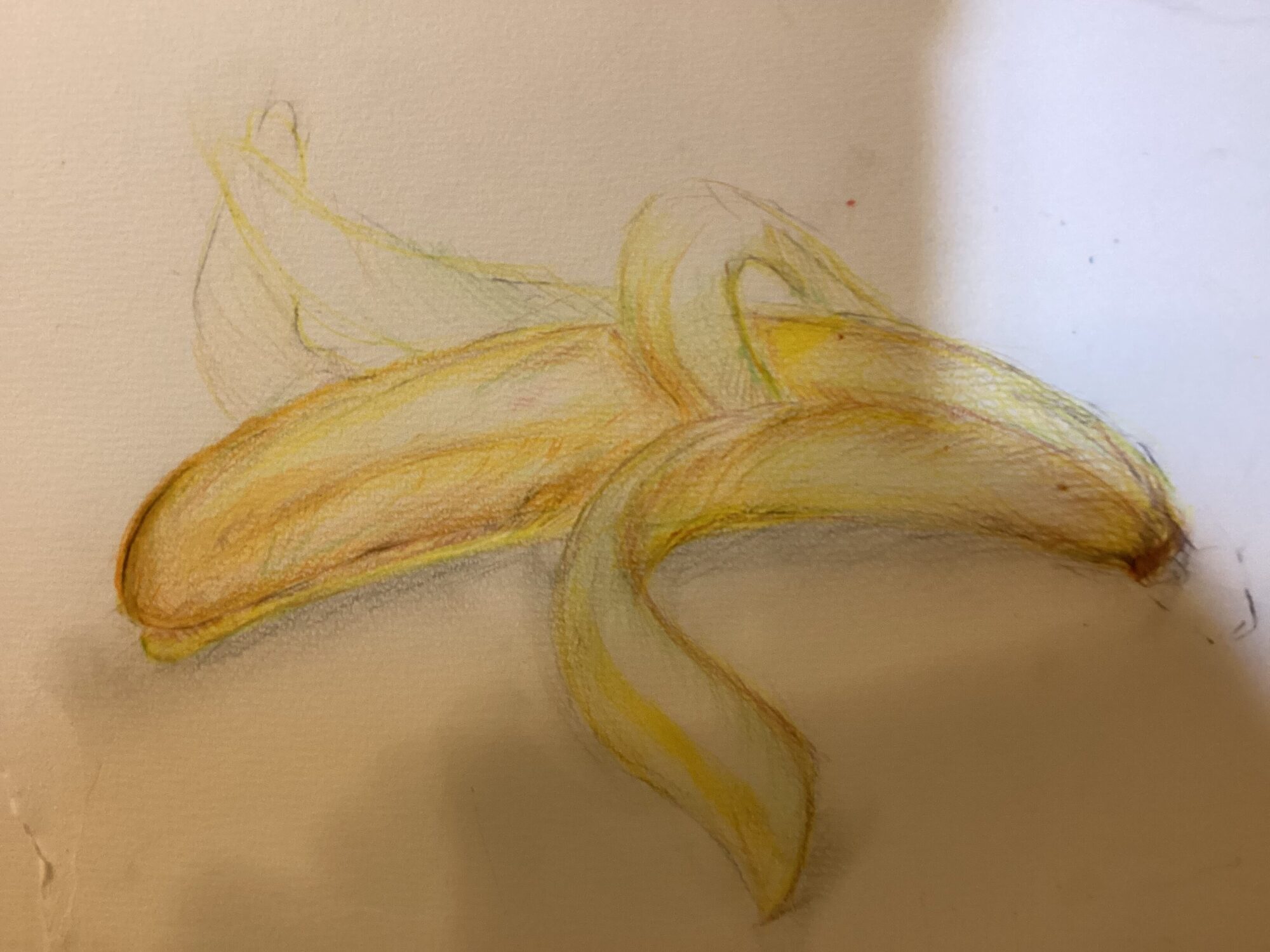 柔らかい質感は、色鉛筆を寝かせて描いたり(ティッシュで擦ったりしても良いかも)、硬い質感は、色鉛筆を立てて描いたりすると表現できますよ〜