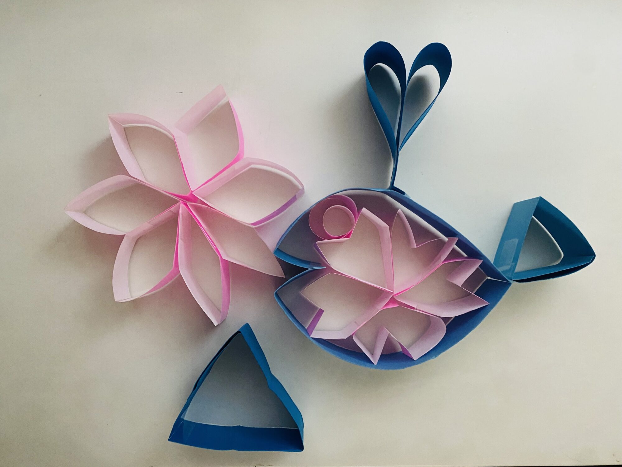 ペーパーブロックでじょうずにさくらを作ってくれただけじゃなく、くじらのおなかにいれちゃうなんておもしろいアイデア(⋈◍>◡<◍)。✧♡