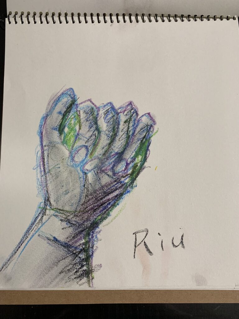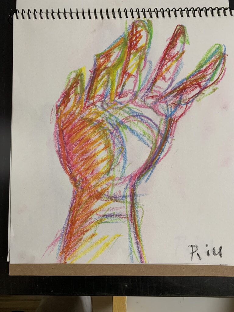 影の感じや、手のしわの感じなど、手の形だけじゃなくて細かいところまでよく見てかけているね。先生は特に、最後の作品の色が綺麗でいいと思ったよ。Riuさんは気に入った手はありますか?