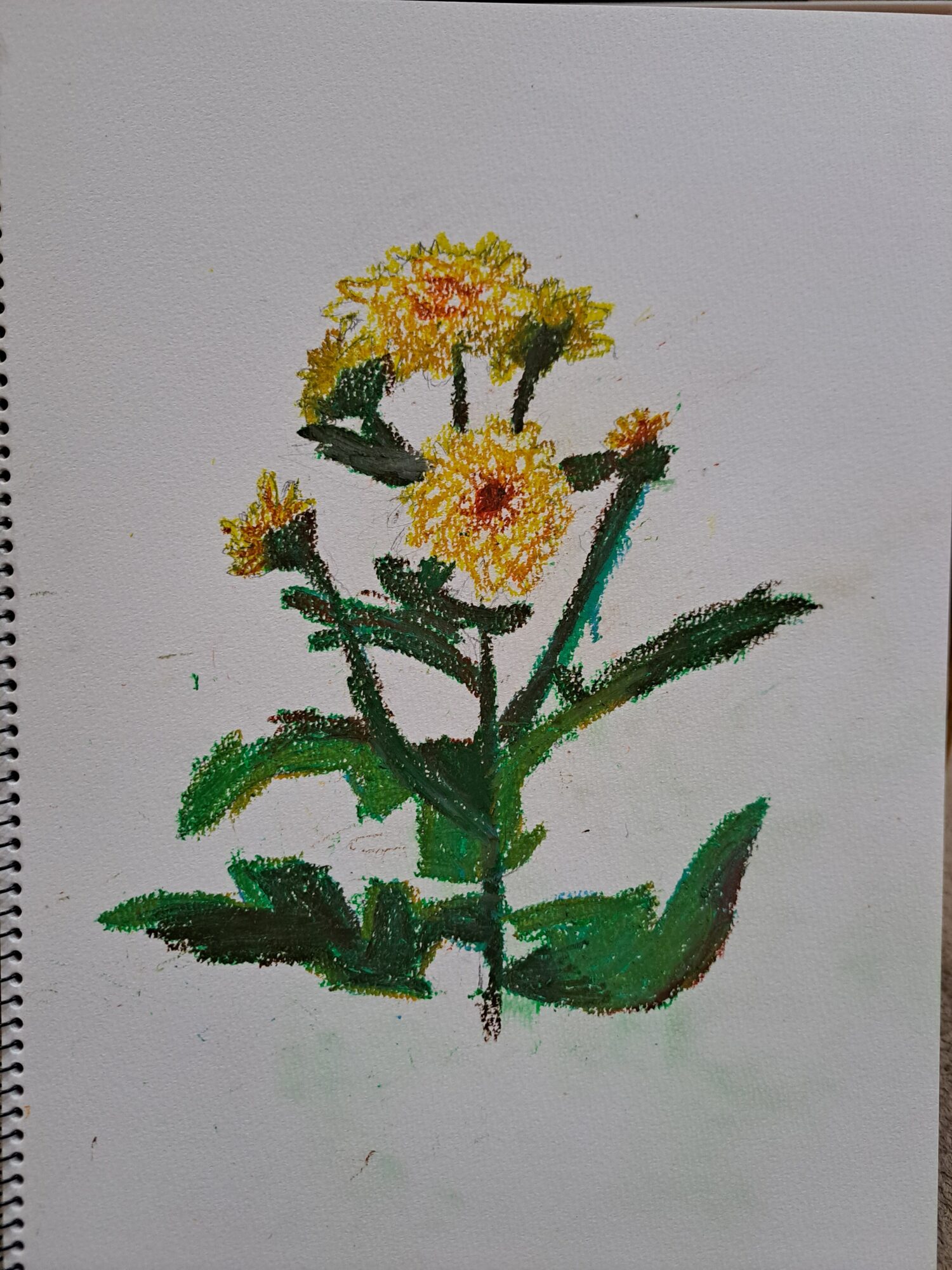 しんぺい先生 先生2024年6月25日 11:53 AM いいバランス感覚だと思います。 むしろ黄色の隙間から覗く紙の白が花の明るさや量感を表すのに一役買っているようにも思えます。 葉っぱの緑が画材の原色のままではなく混色によって彩度を落とし自然に見せているところもワザありに感じます。 軽やかで素朴な印象でありながら見応えのある良作ですね! ログインして返信する ↓