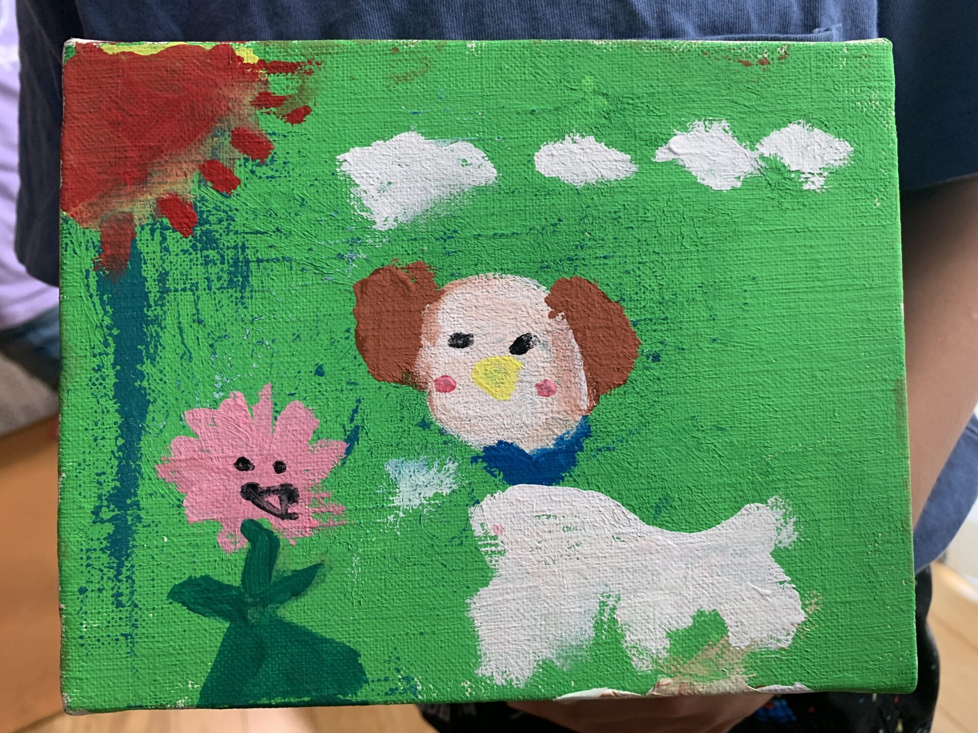 ワンちゃんととはなさんがはらっぱでげんきにだんすしているところです