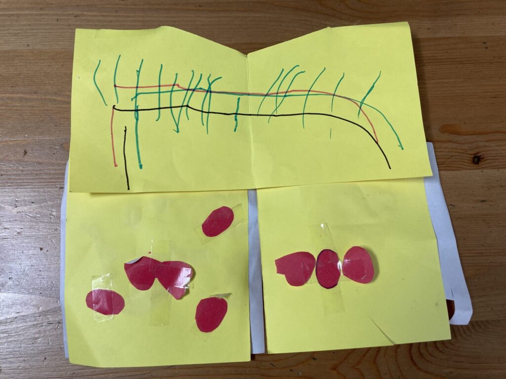 首のところには、先生2人と自分を描いていました!