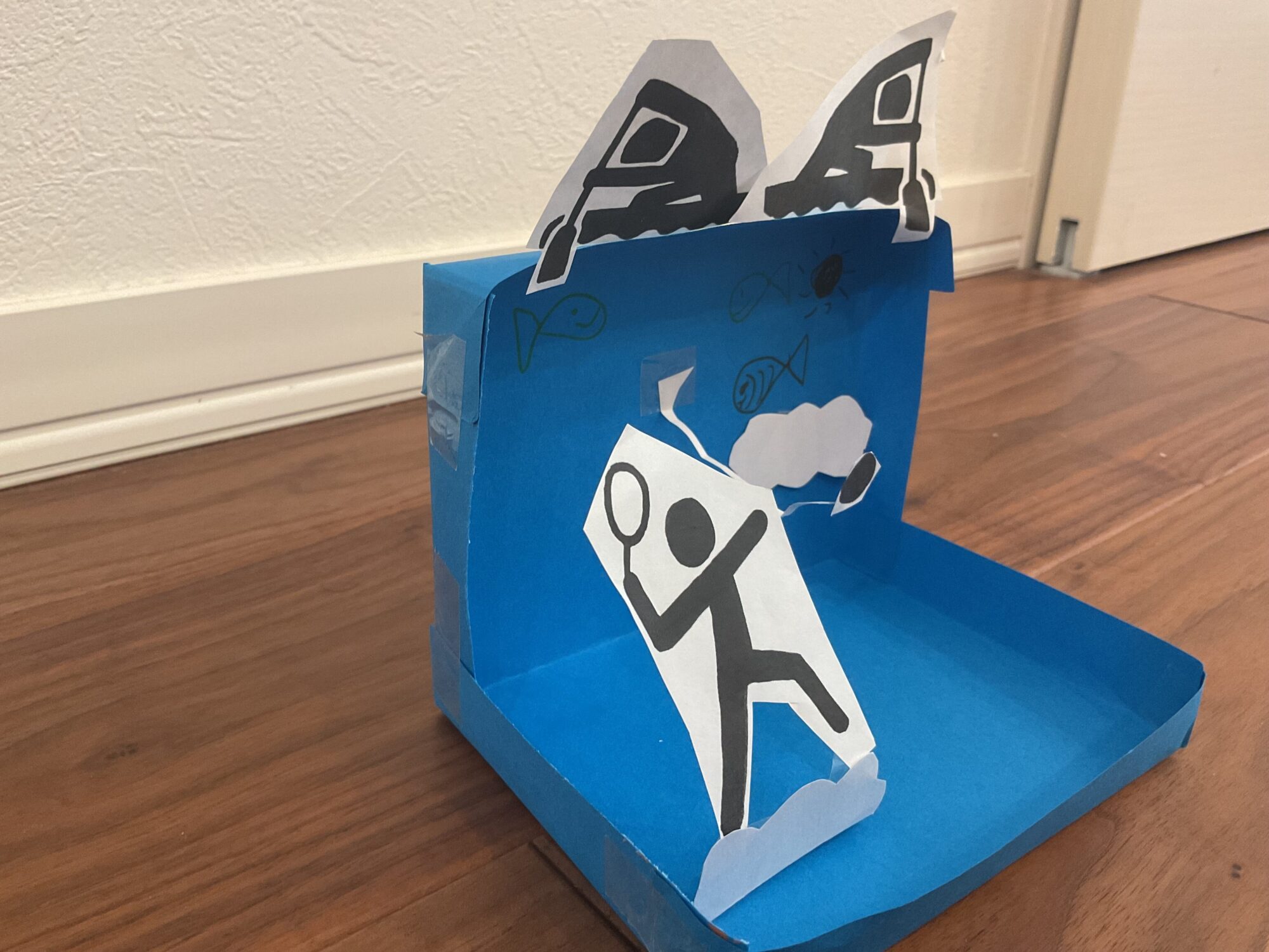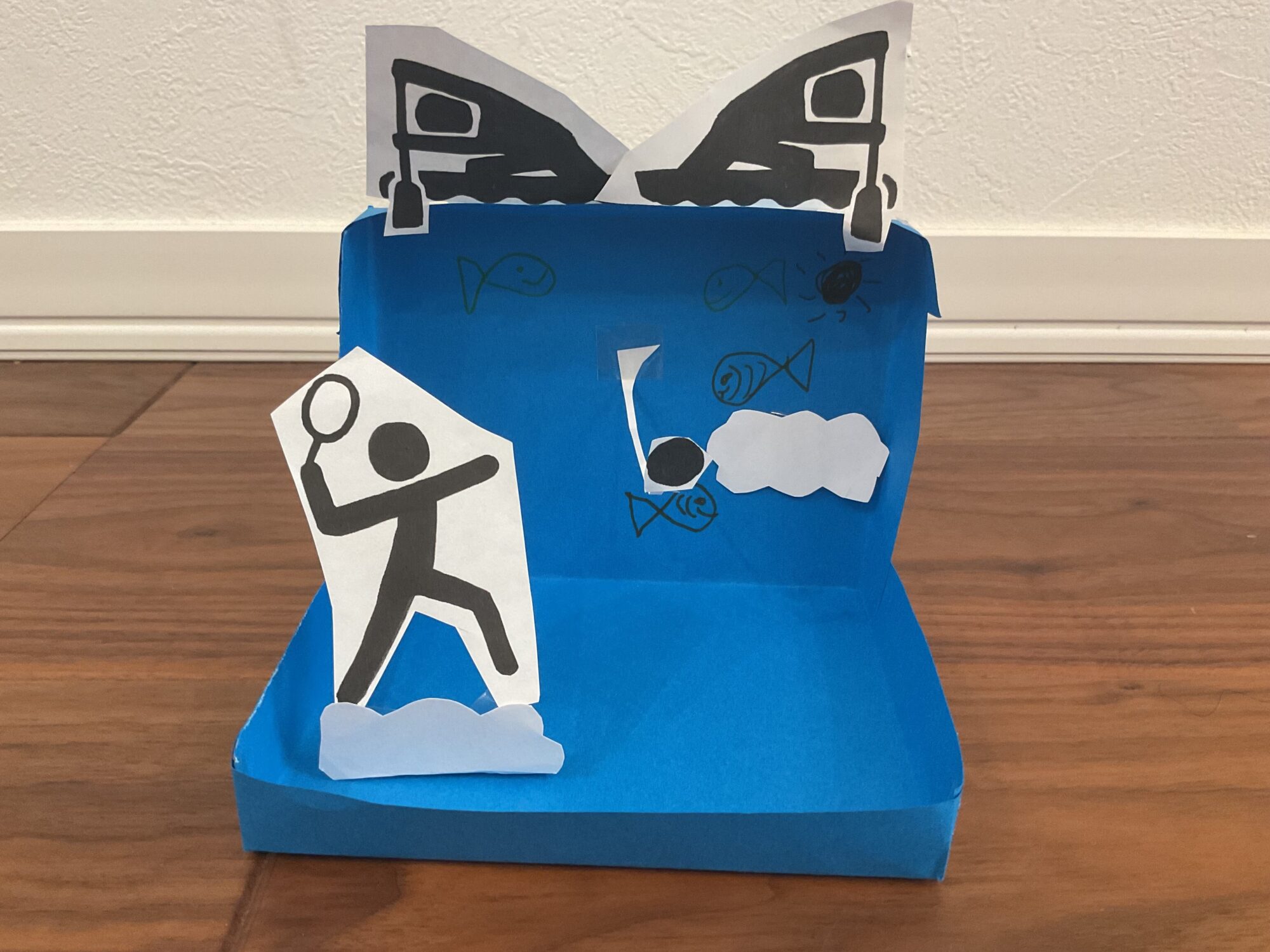 そして、青い画用紙を使って青い空と青い海を表現しているのが、すっごくいいですね!!
