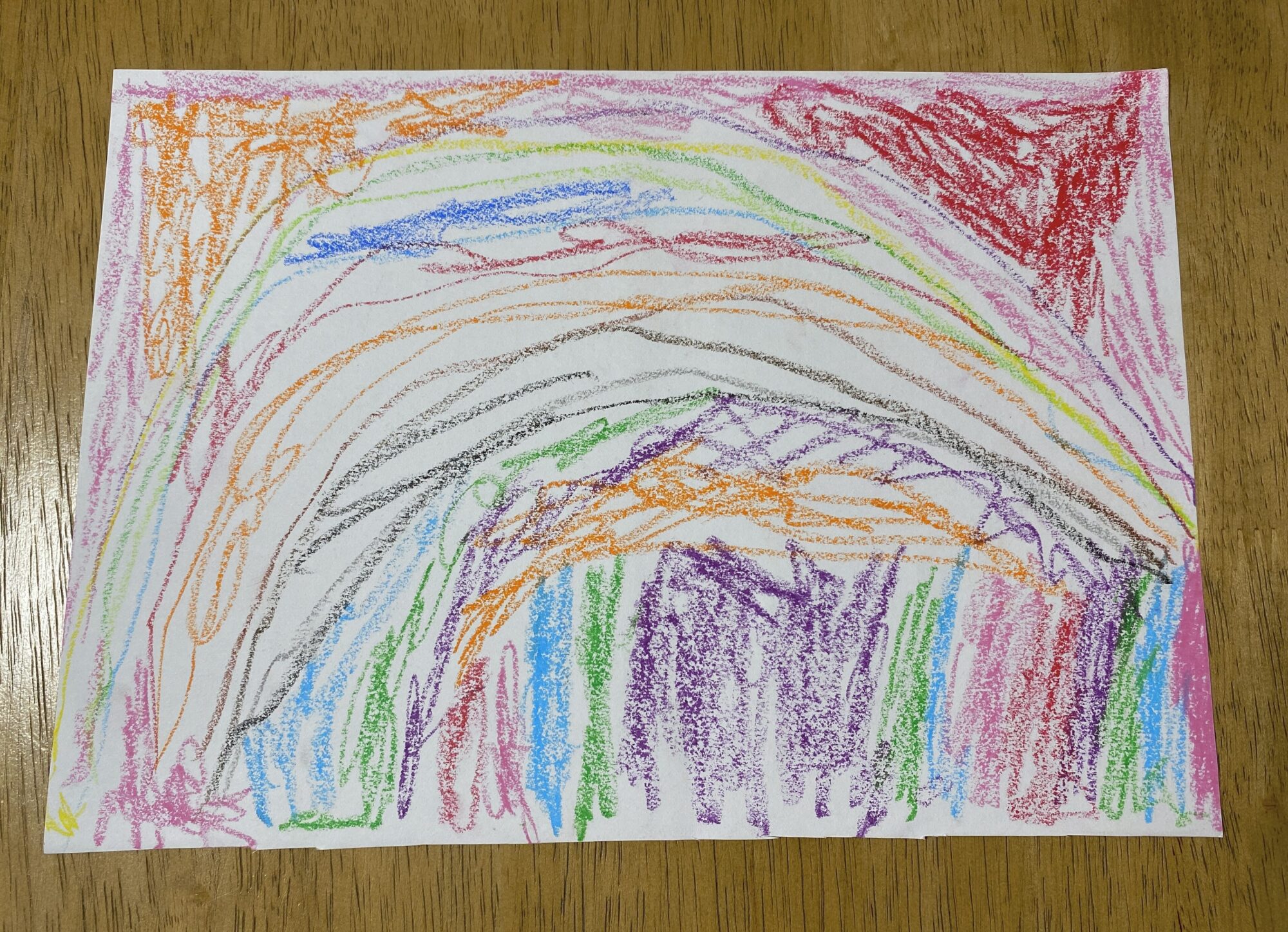 クレヨンの動きや、サラサラっとした塗りがクレヨンが嬉しそうに踊っているように見えて、、心がワクワクしながら描いたのがとても伝わってきます!