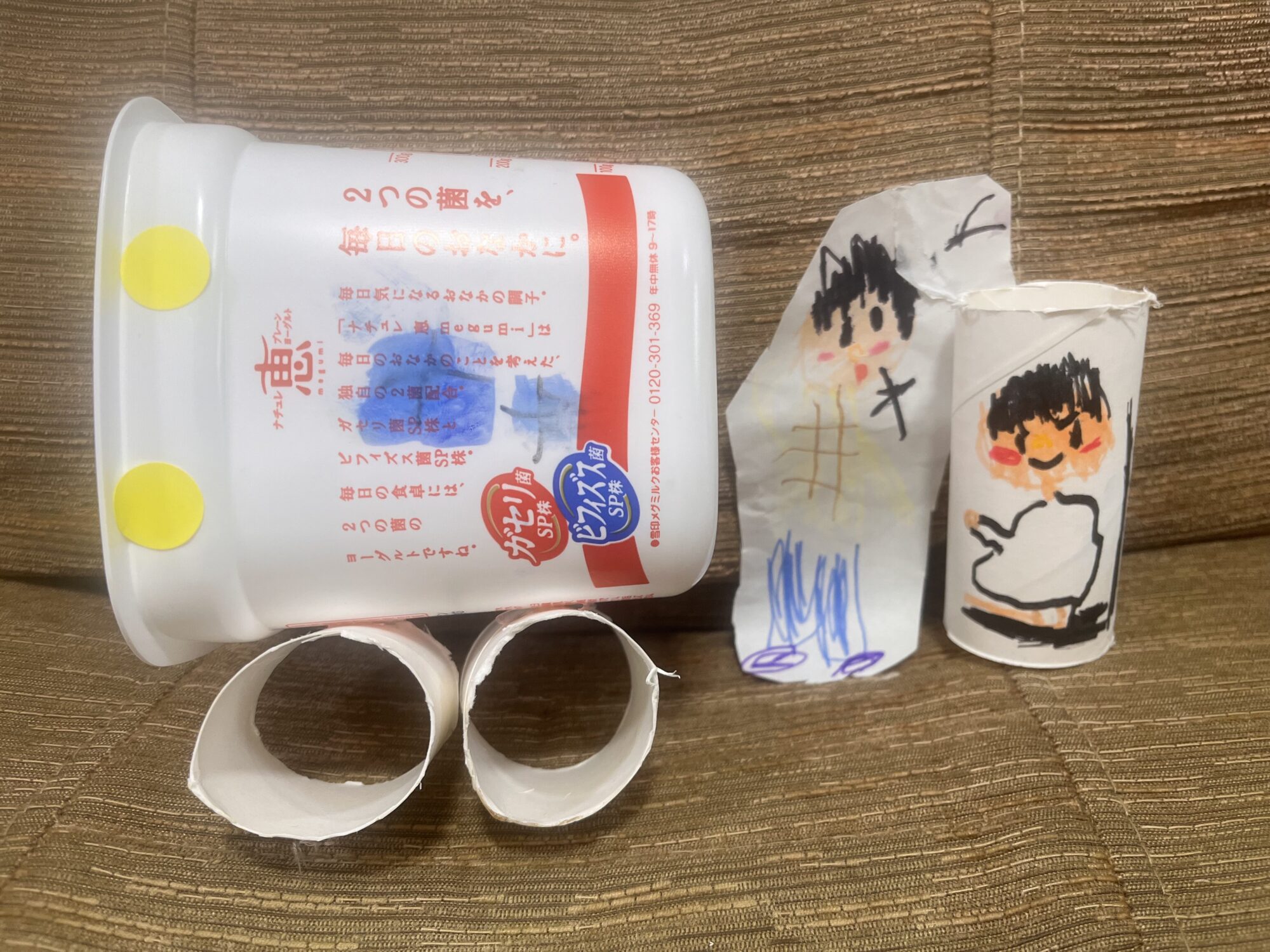 トイレットペーパーのしんをつかって、タイヤをつくったり、パパを作ったりできちゃうアイデアがすてき✨