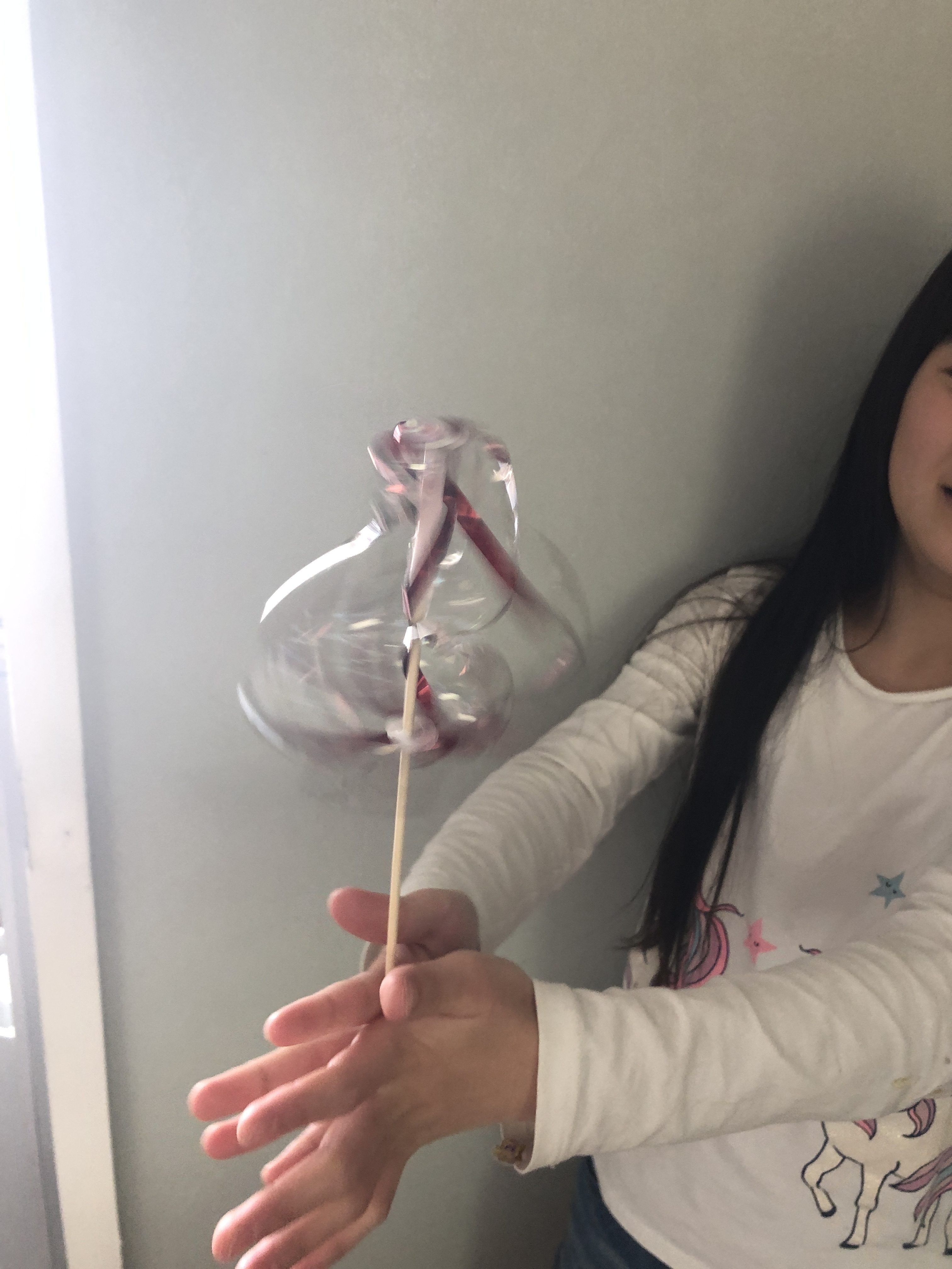 シャボン玉工作、難しかったですね~!!!(>_<) 実は先生は3回くらい失敗しました…。 でも何回も作っているうちにコツをつかんできたよ! 回すとキラキラしてすっごい癒されるよね~(*´∇`*) は~♪お写真見ているだけでも癒される~🎵 ぜひぜひアレンジなんかもしてみて楽しんでね!👍🍀