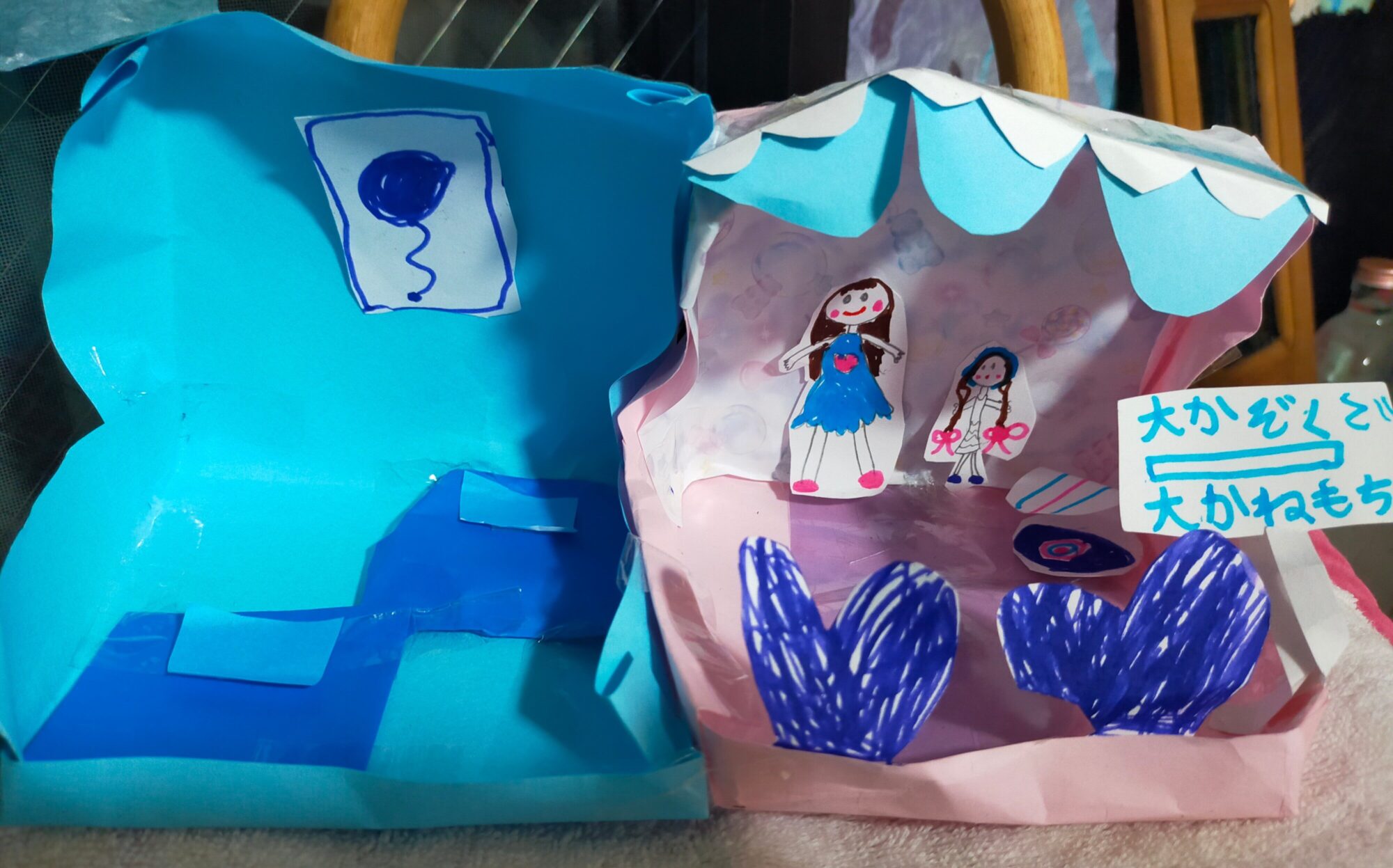 すてきなくものうえのおうちですね! かわいいベッドがもあって ふわふわうかんでくらすのかな?