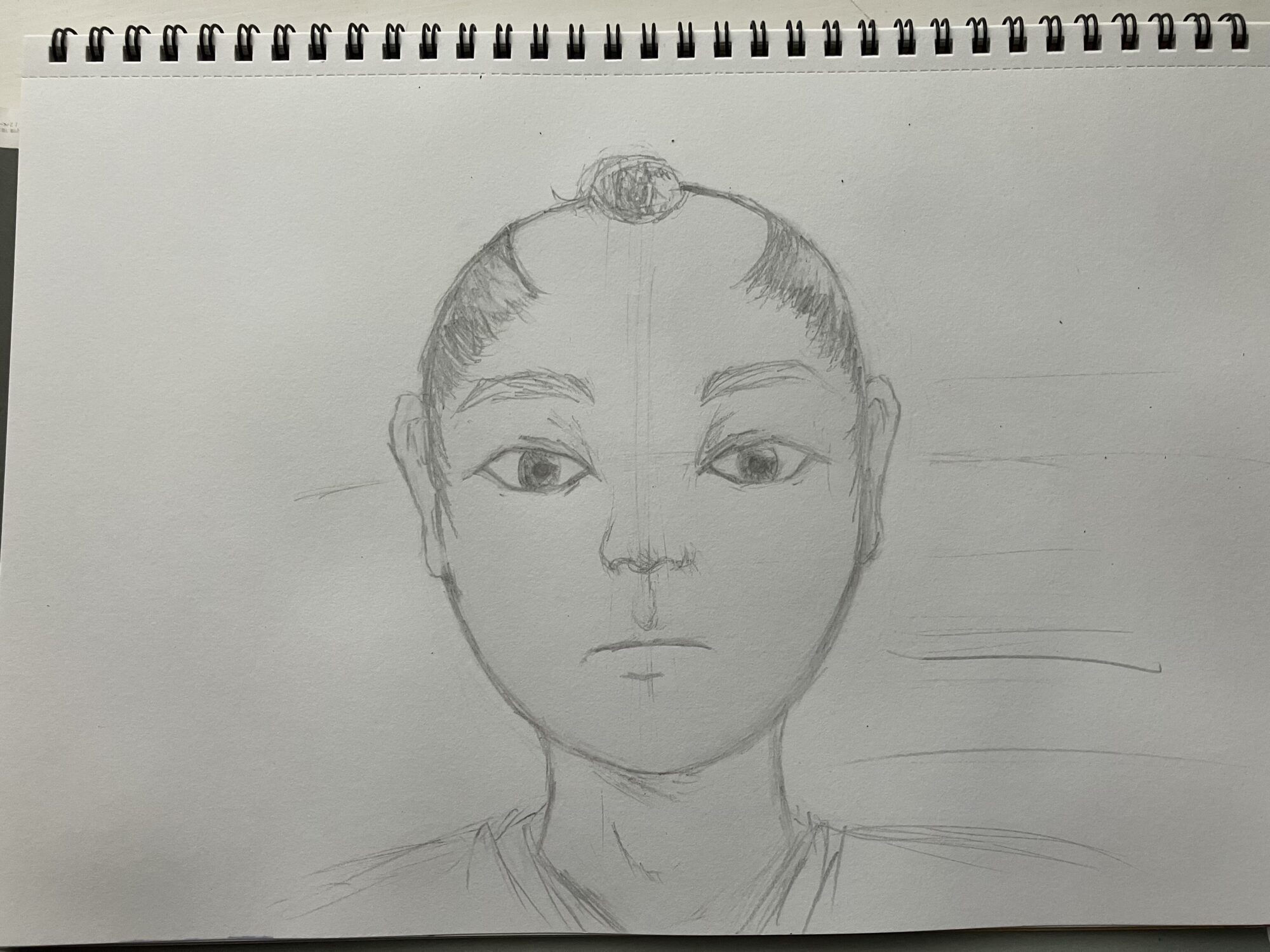 正面の顔を描くのは難しいと思いますが、上手に描けてるな〜と思いました!鉛筆で、細い線や太い線の描き分けをするのは難しいと思いますが、そういったこともクリア出来ているのがすごいなと思いました