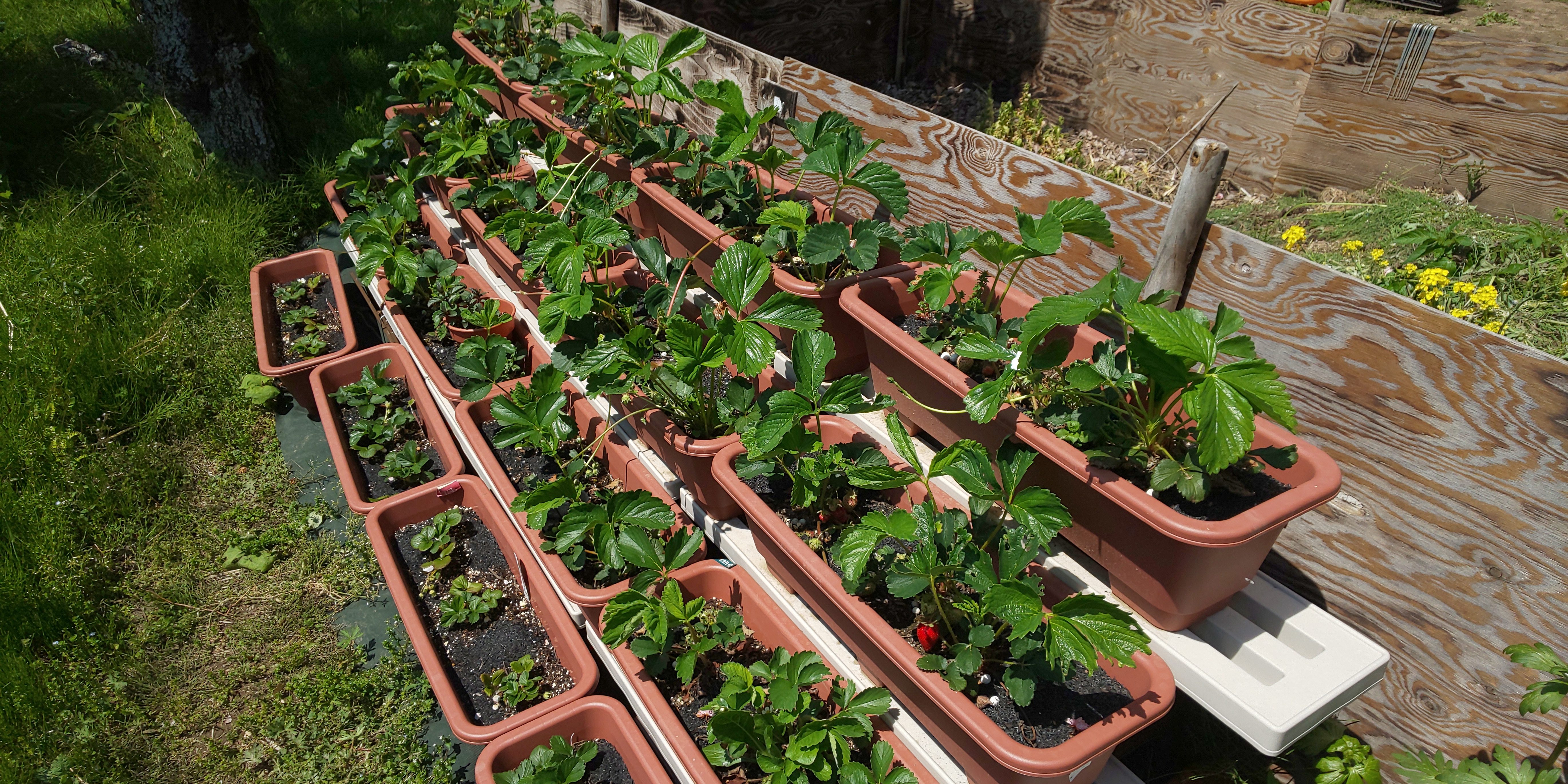 いちご棚、このようにプランターを階段状に並べるとできちゃうんですね!