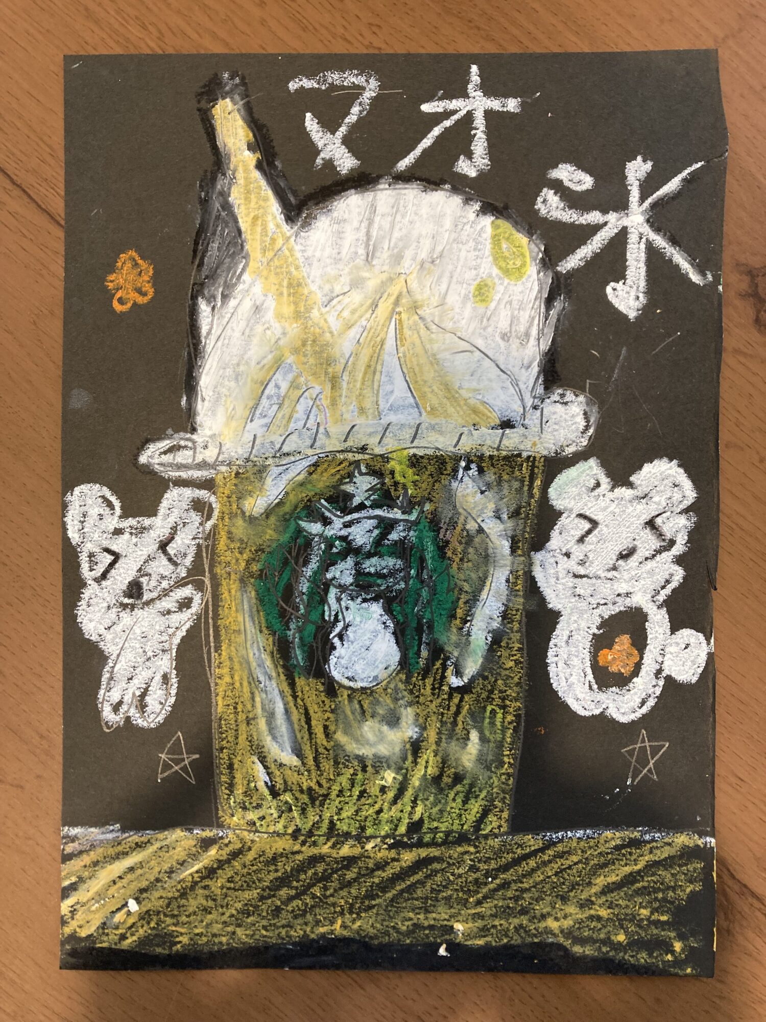 順子先生 先生2024年8月23日 9:05 AM とってもおいそうに描けていますね!! 氷の表現が素晴らしいです♪ カップや台の塗り重ね、色合いがとてもいいな~と思いました! これからもチョークアート是非描いてみてください(^-^) ログインして返信する ↓
