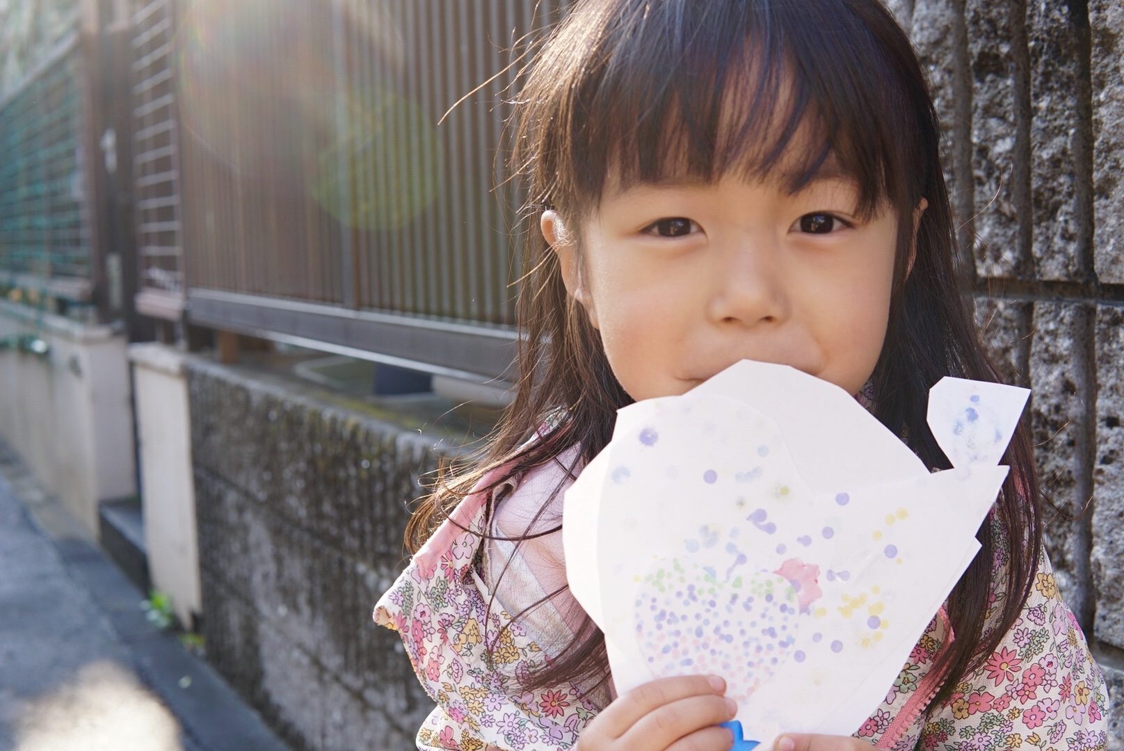 ありがとうございます。ただのヤンチャガールです。画用紙に点でお花をたくさん描きました。