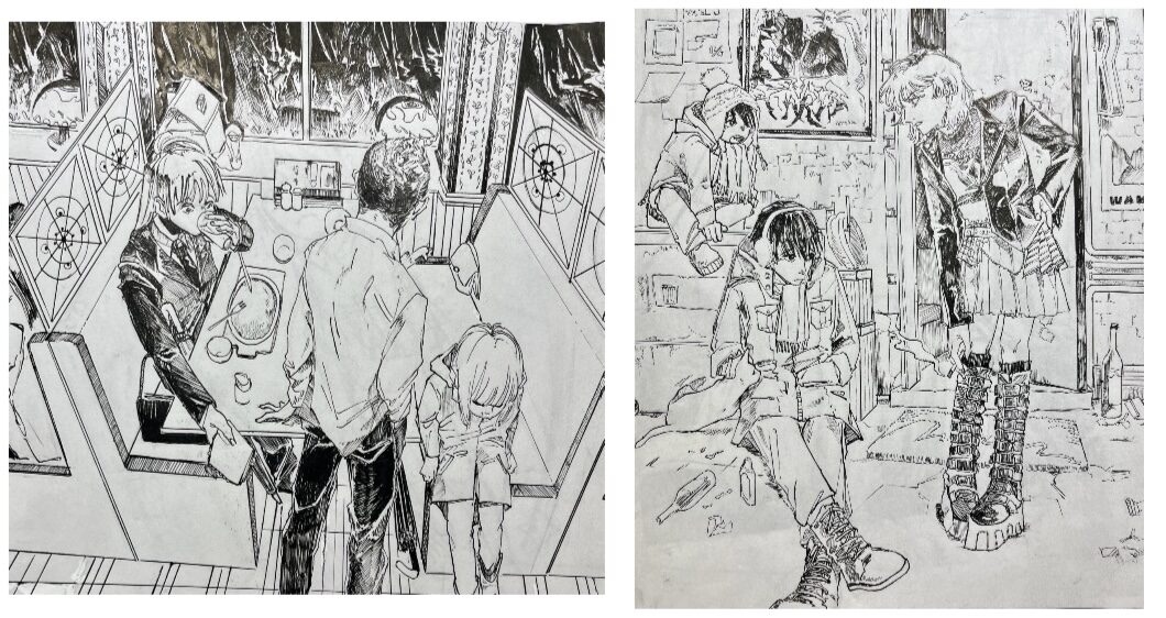 どこで何をしてるのか伝わるし、細かいところまで描いてるのと、主人公?以外の人が居ることで、その場がリアルにみえるね