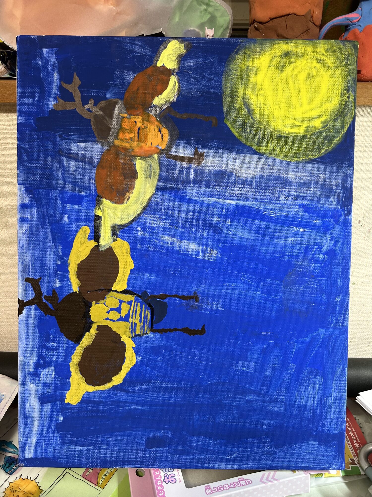 2匹のカブトムシの月の光の当たり方を工夫しました