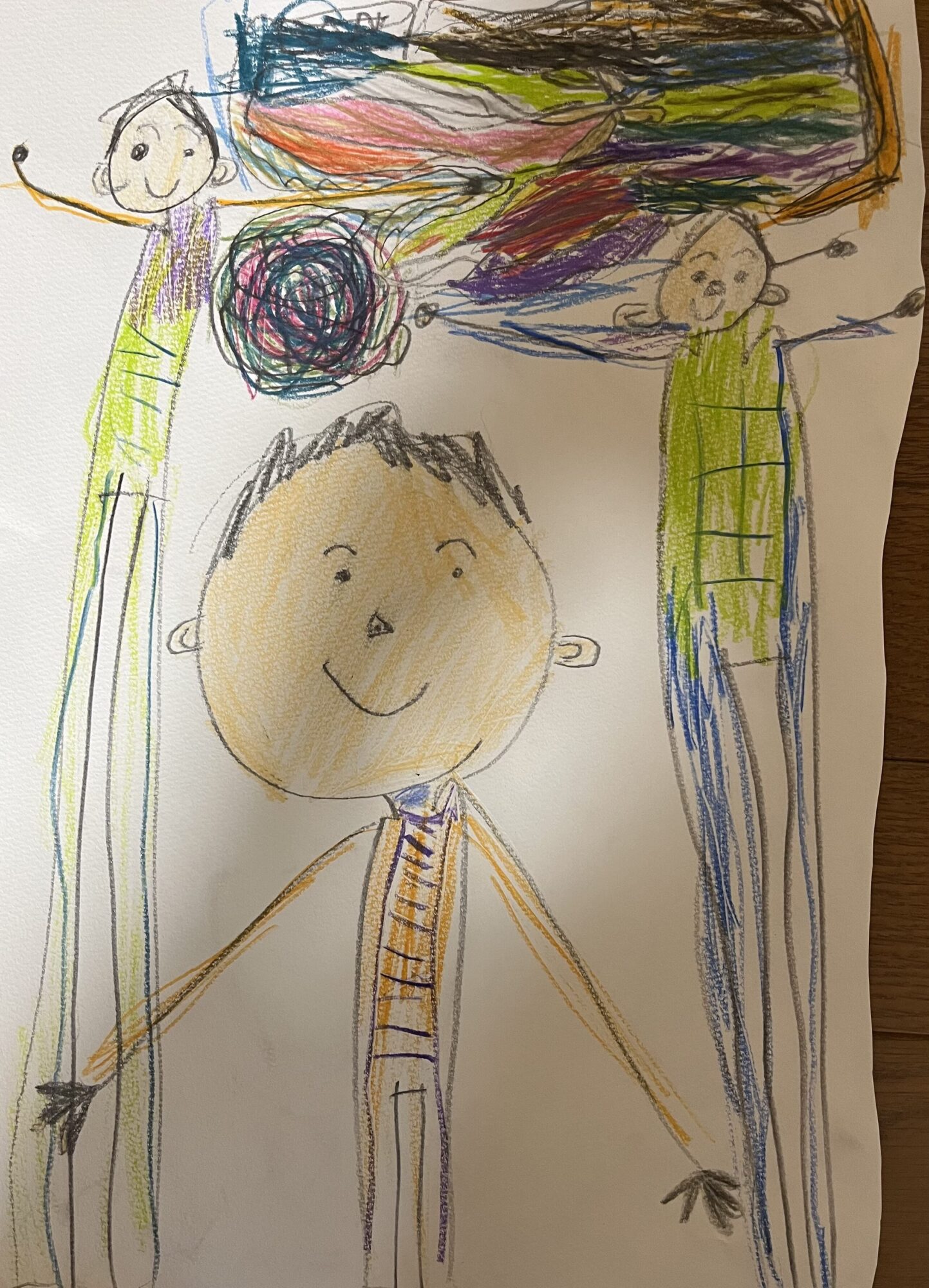家族でボール投げ、とっても楽しいのが絵から伝わってくるね(*’▽’)