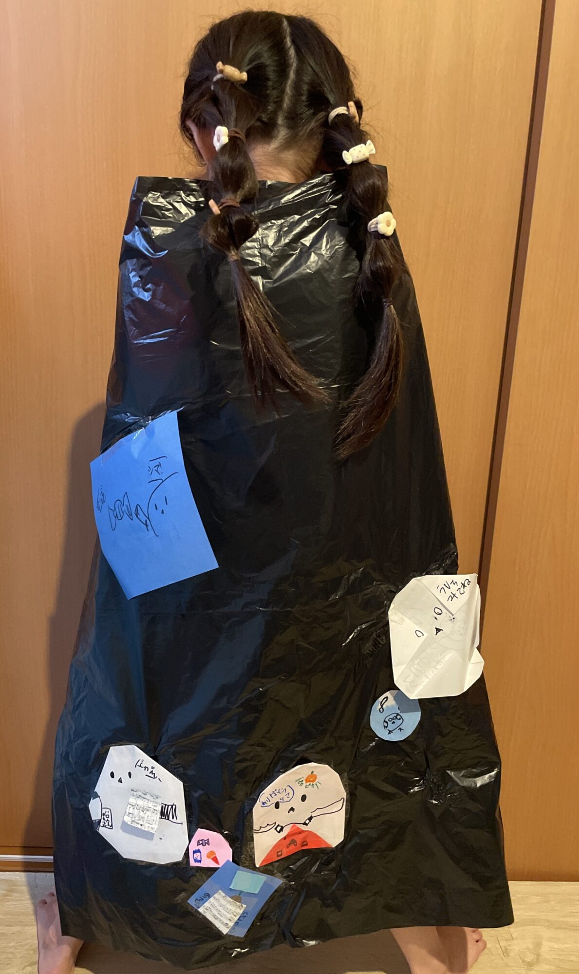 楽譜の柄の折り紙があったので「ハロウィンの歌」として貼って、幼稚園の先生と生徒のようにしました。