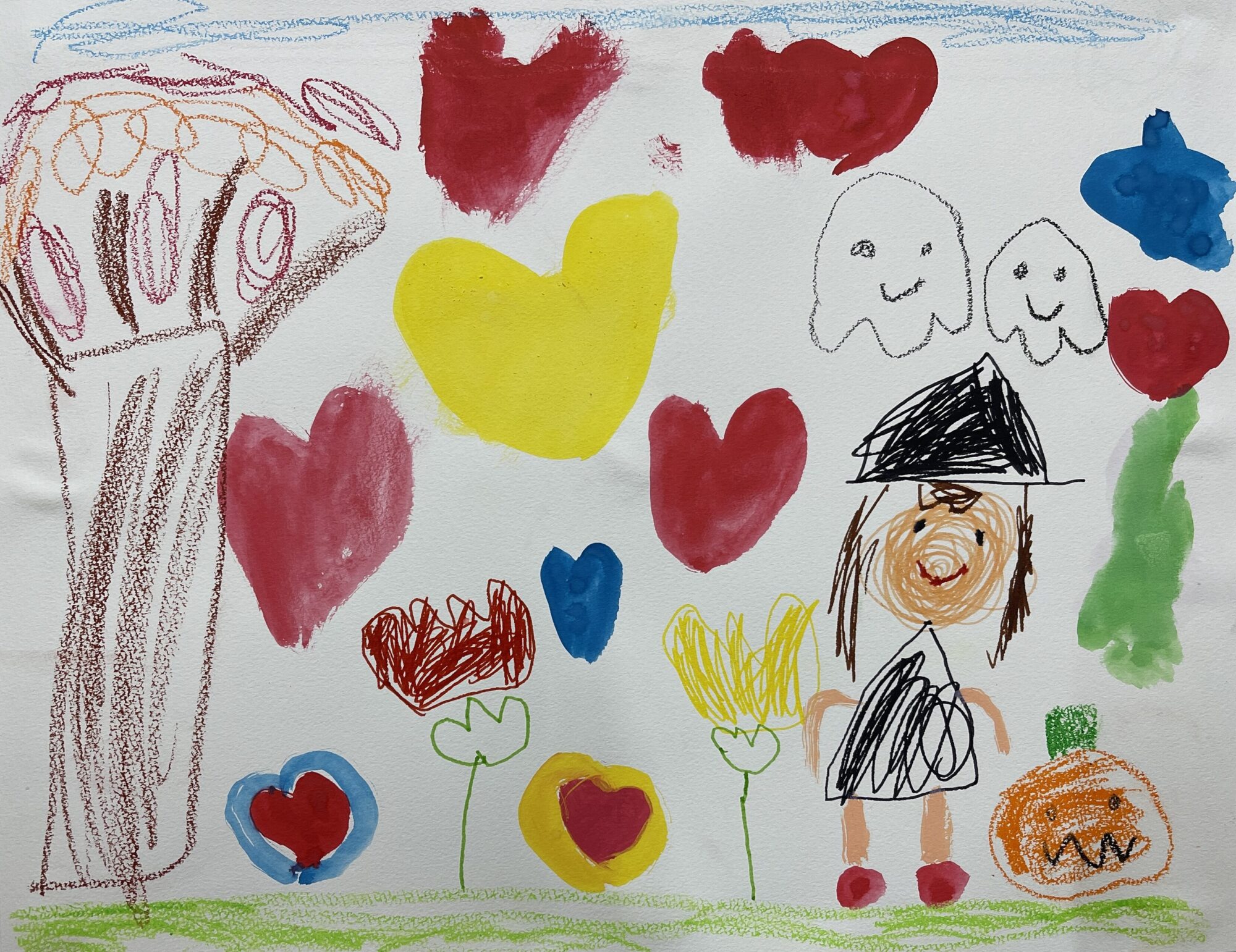 絵の具もペンもクレヨンも使って書いていて、とってもすてきです。かわいい!
