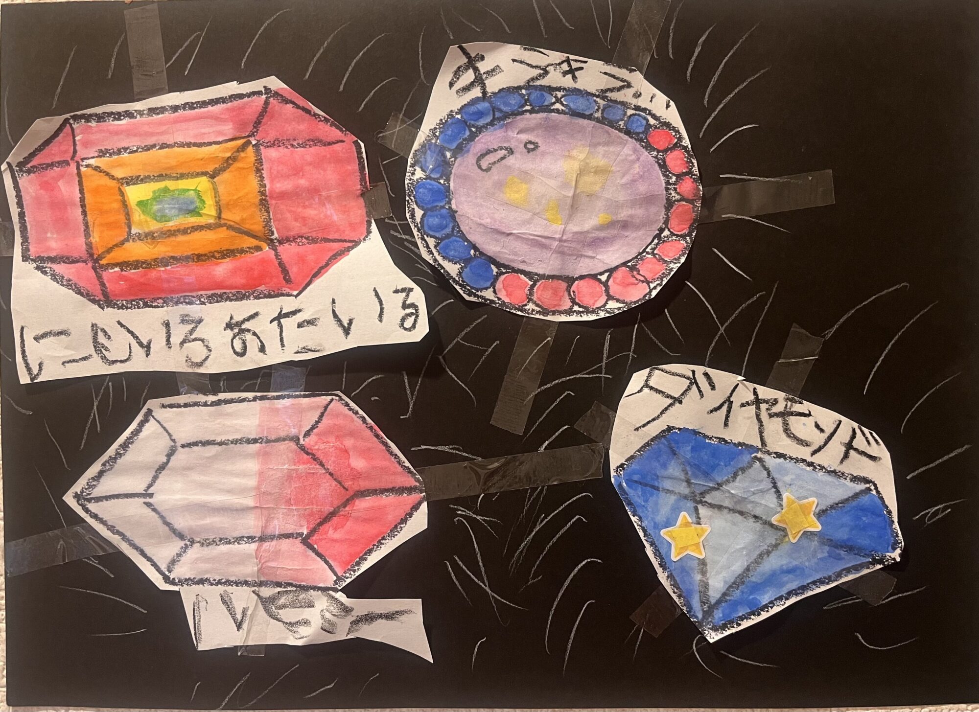 わかめせんせい 先生2024年11月1日 9:04 AM おお!新しいタイプのチョークアートだあああ! 台紙を黒から白に代えて、きらきら感を出したのですね! 素晴らしいアイデアです! 宝石のなまえもすてきですね。 ログインして返信する ↓