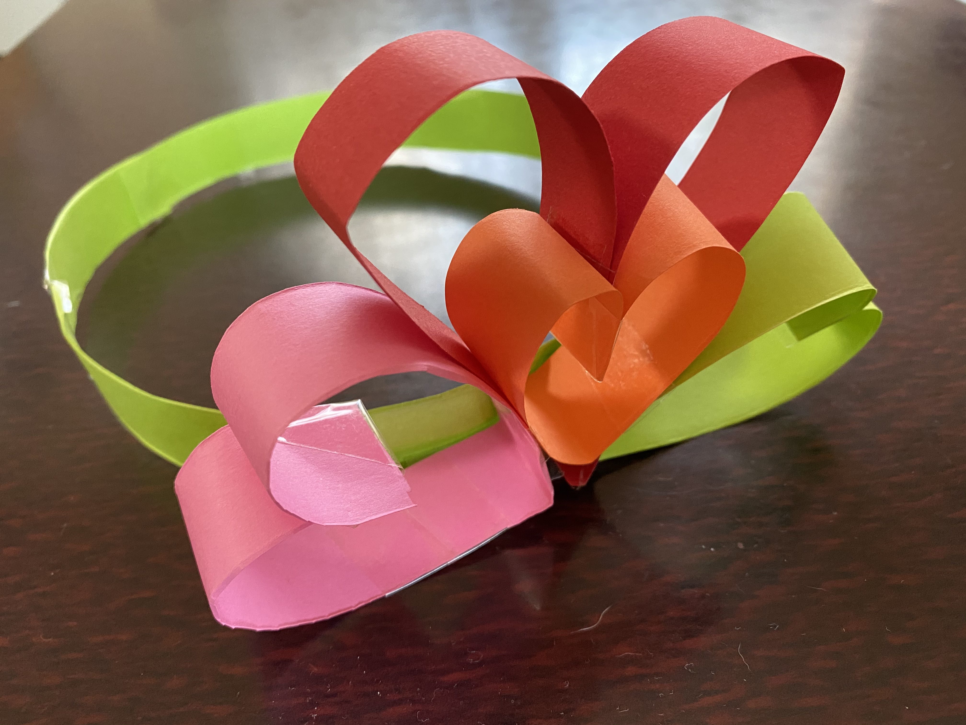 はーとをくみあわせてこんなかわいいティアラになるなんて、すごいね! これをかみにかざったらかわいいでしょうね!
