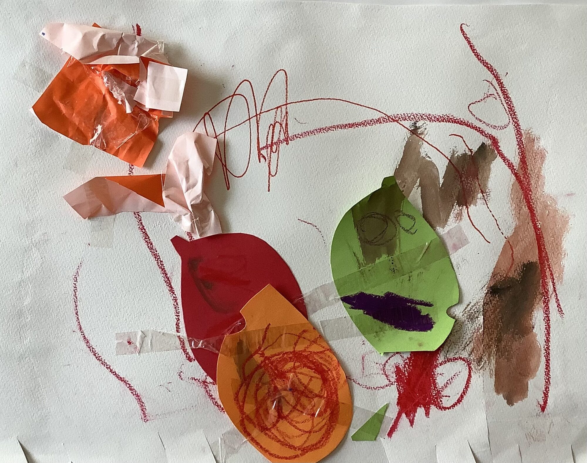 クレヨンに絵の具折り紙にセロハンテープ色んな材料でステキにできたね!