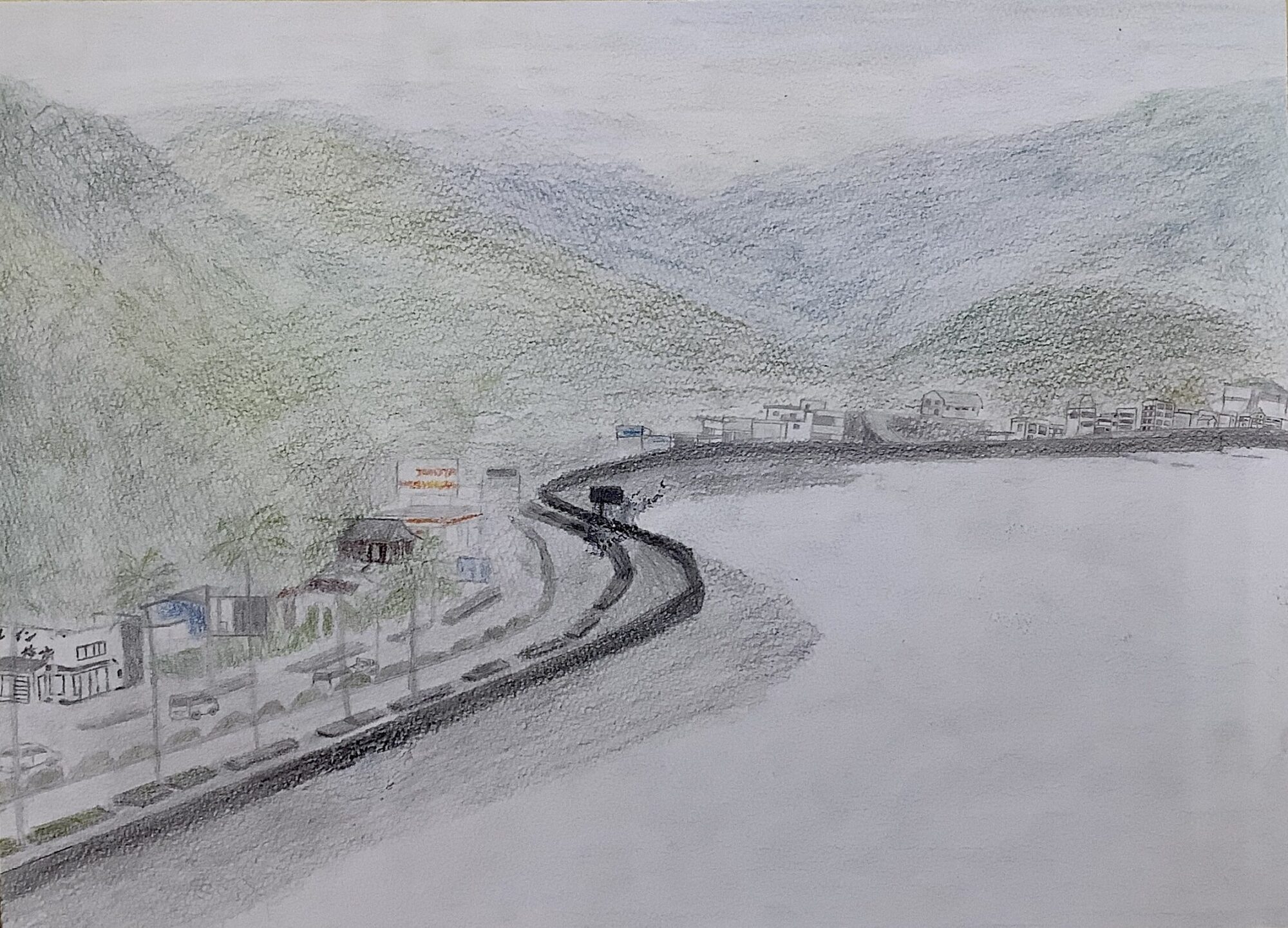 この場所わかります!もう少し手前の方に行くとジョナサンありますよね。このヤシの木がある道が好きです。海と山の違う感じがいいですね。