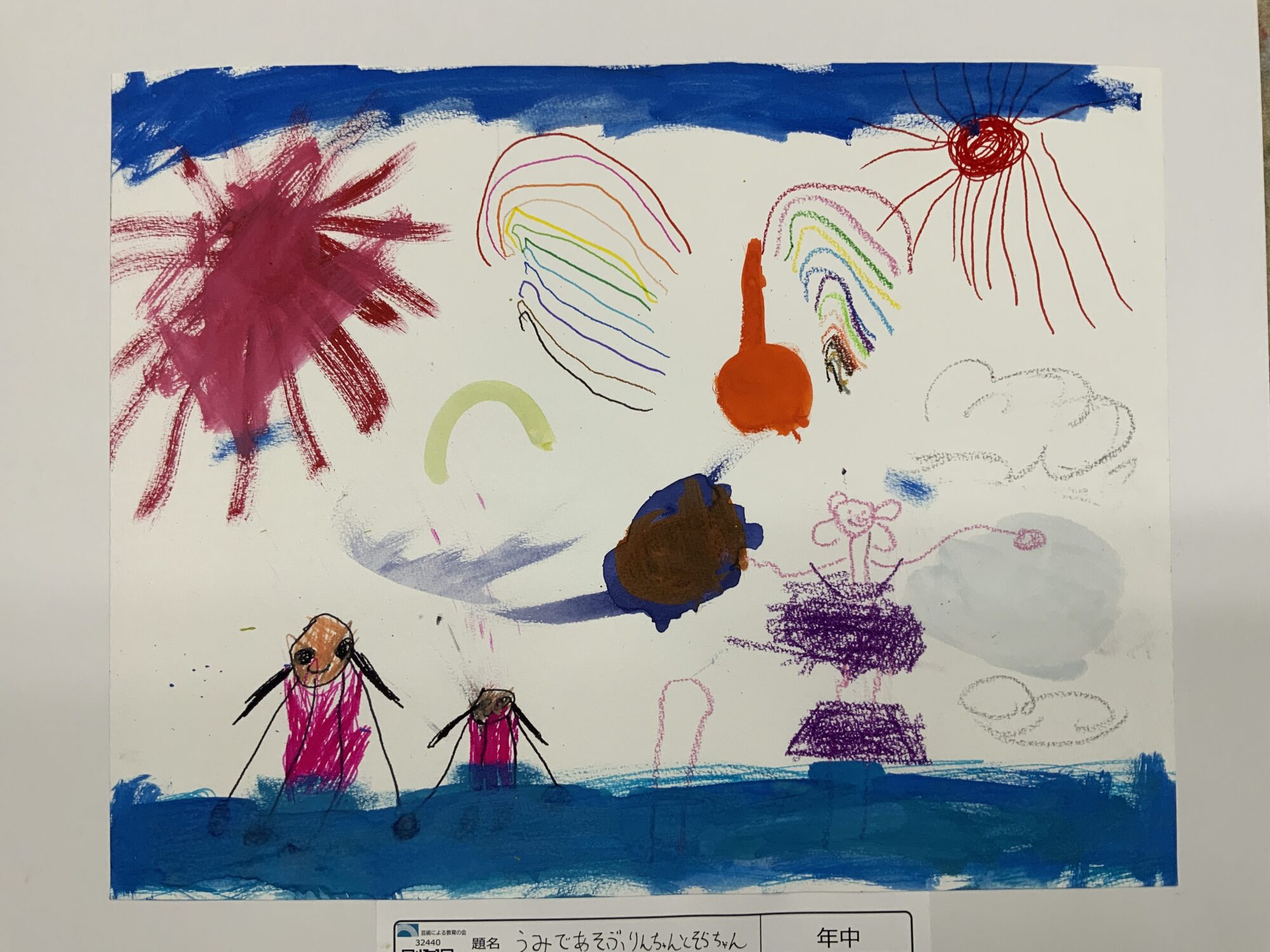 うみであそぶりんちゃんとそらちゃん