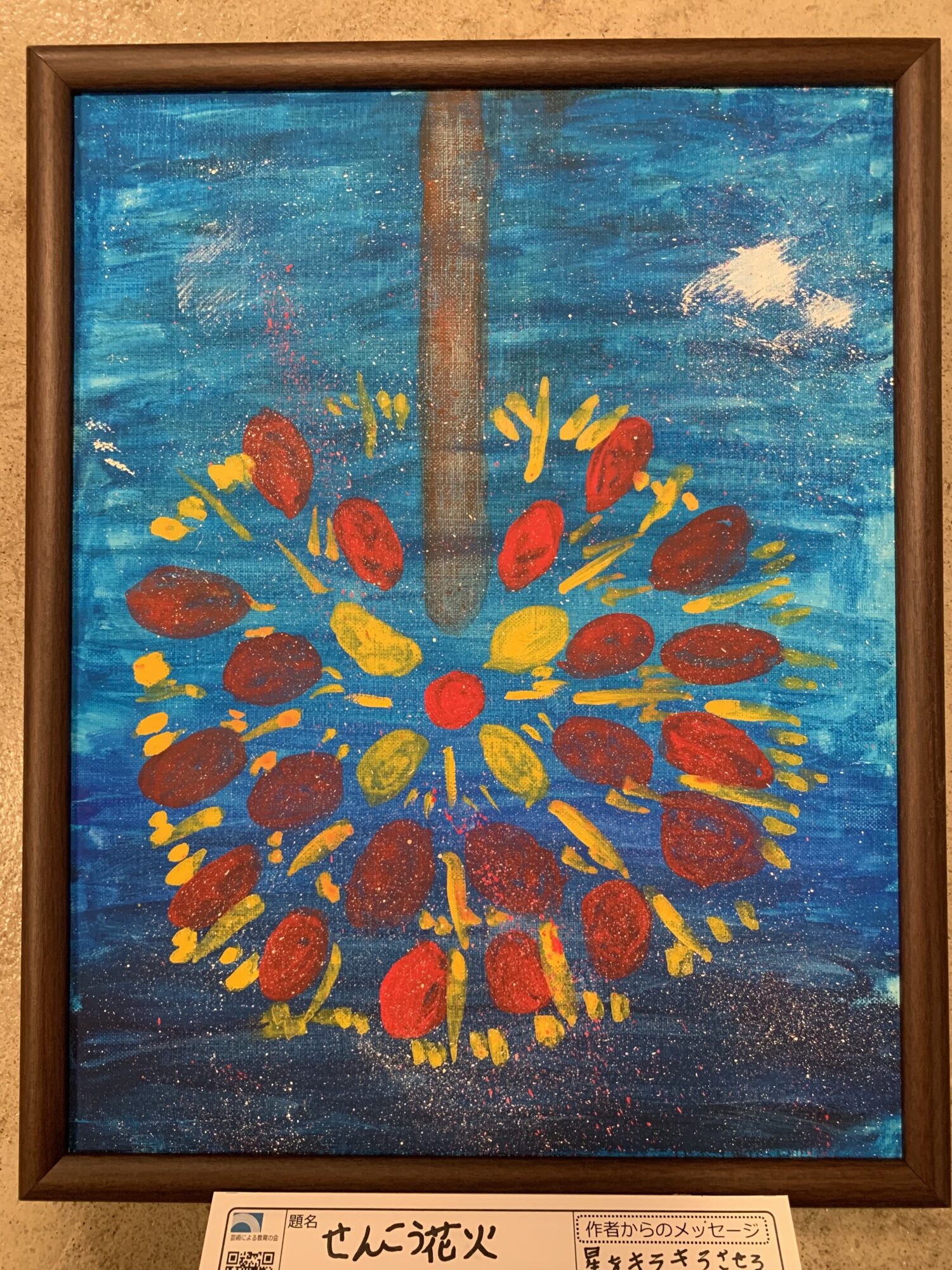 はぶらしを使って色をつけている感じが花火の火花に見えて写真のような絵でした。