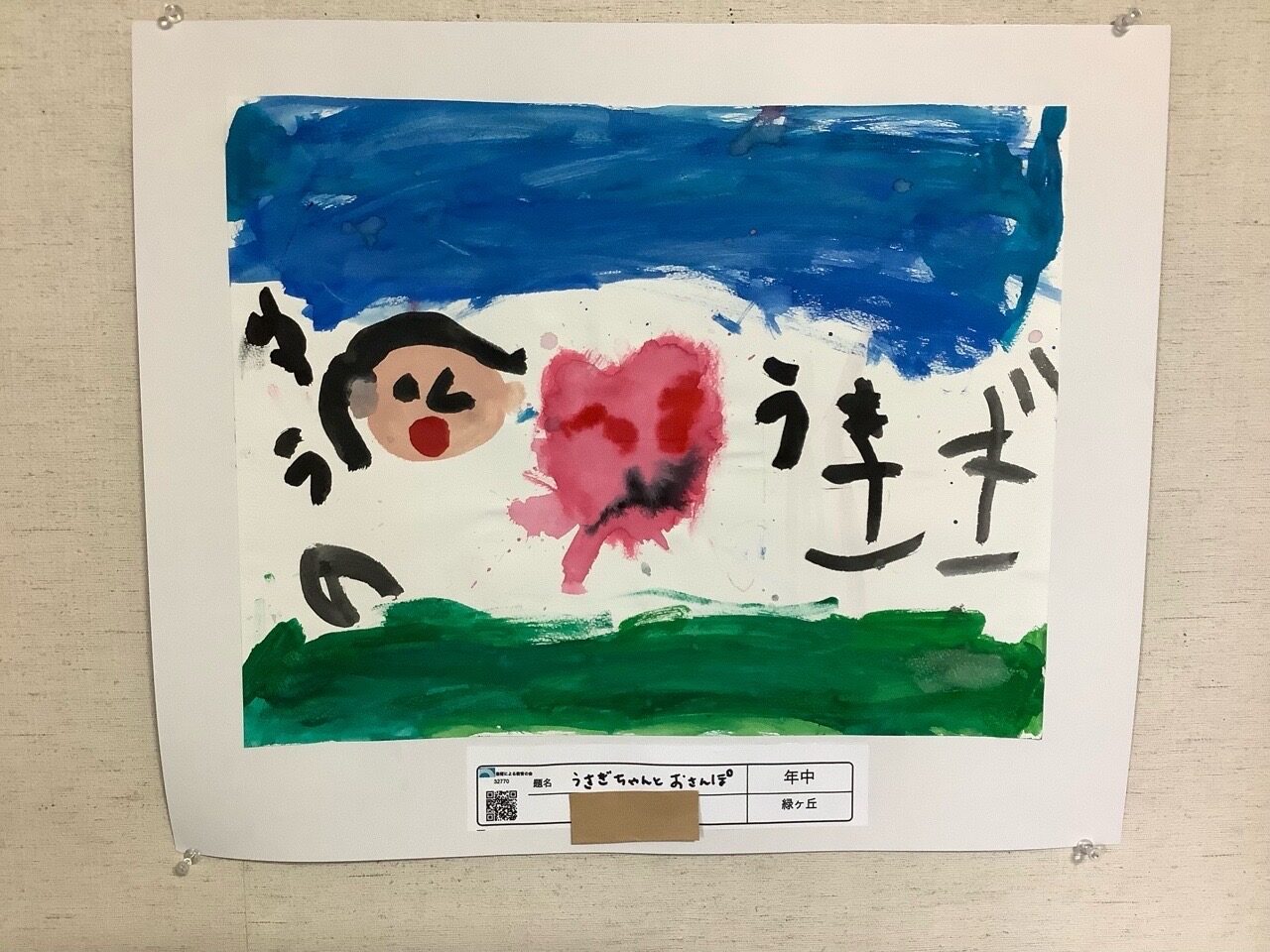 筆を動かすのがすごく楽しかったことが伝わってきます!緑と青が迫力があっていいですね!うさぎさんもゆうのさんも笑顔で楽しそうですね☺️