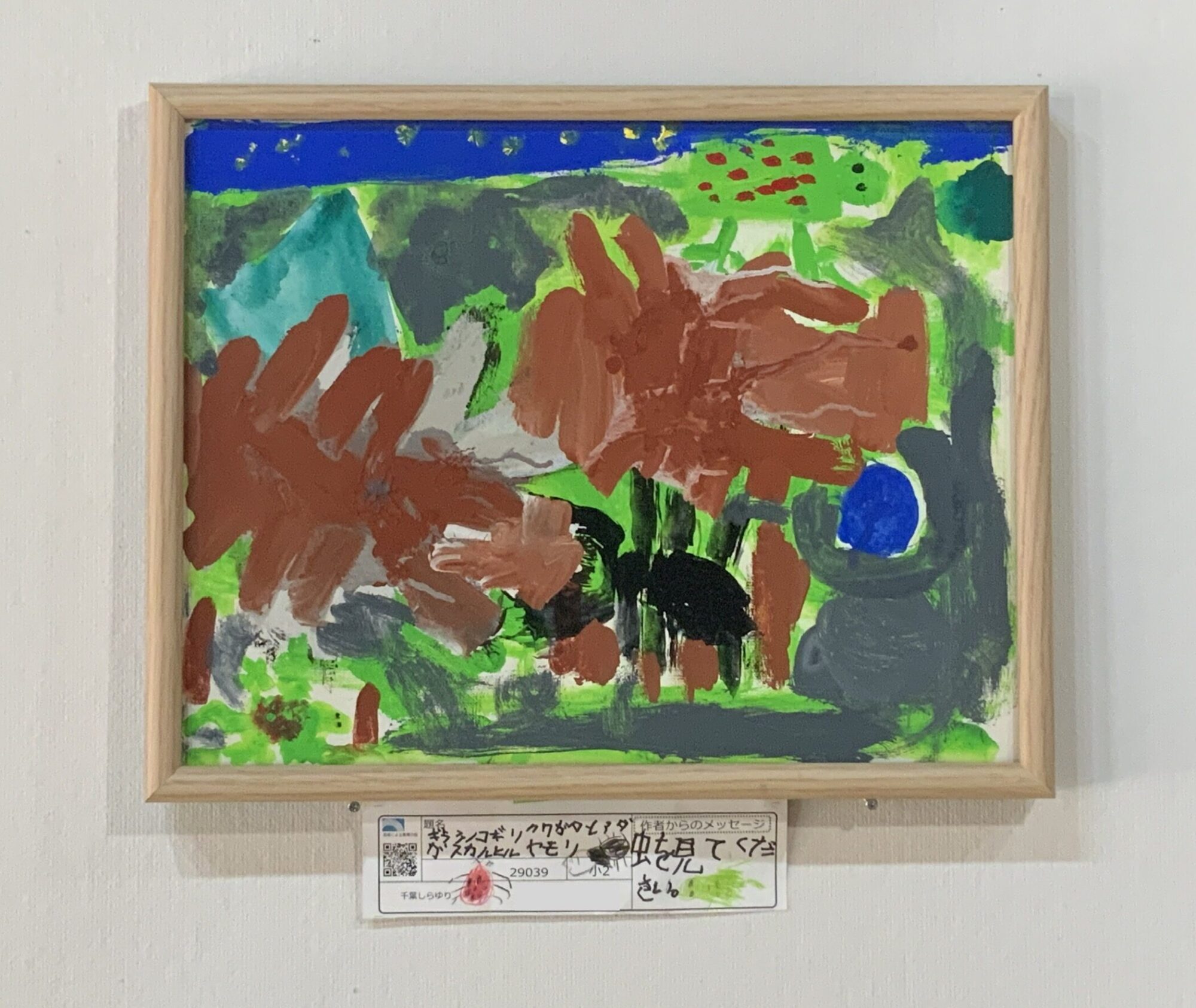 モナ 先生2024年11月23日 8:58 AM かっこいい虫が沢山…! 色も素敵だね〜、これは夜空かな? 空までニコニコ楽しそうなのが伝わってきます 大好きなものを詰め込んだ作品…!かっこいい!迫力があるね! ログインして返信する ↓