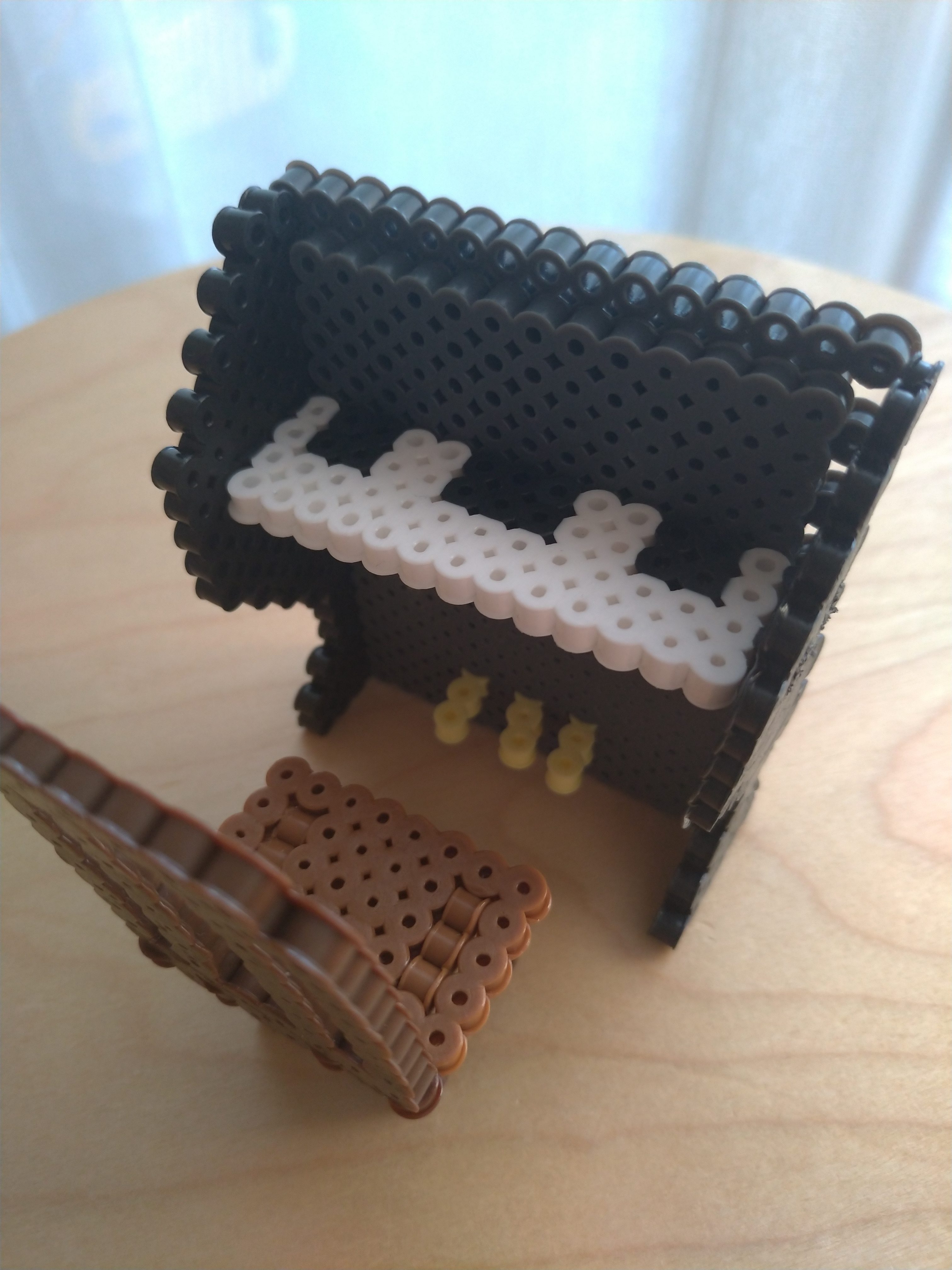 頭の中で展開図を描き、アイロンビーズでオリジナルのパーツを作り、組み立てました。