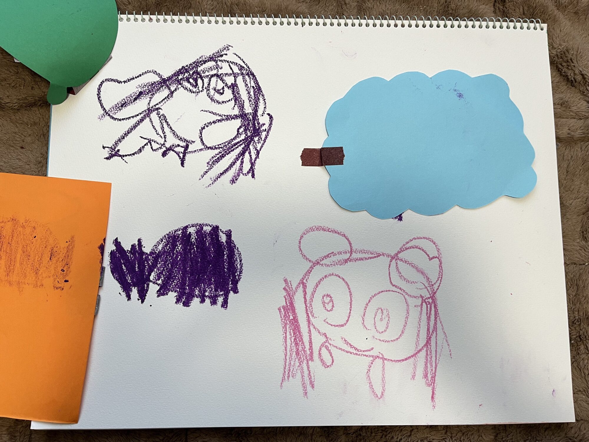ピンク色のお友達が最後にちらっと見えて、誰かなぁ聞きたかったなぁと思っていたら、私を描いてくれていたのですね〜!!