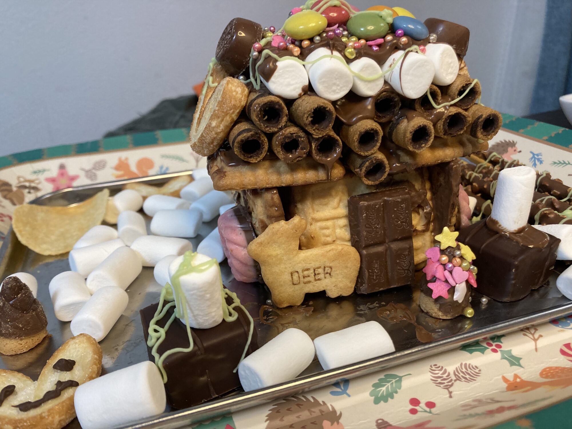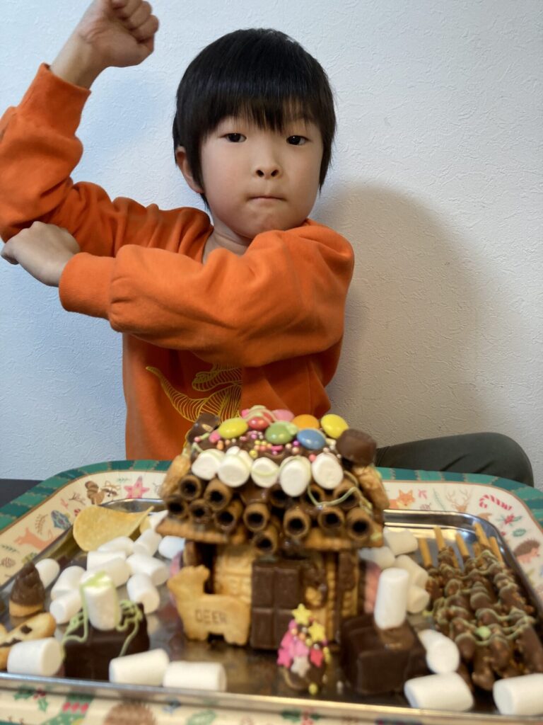 色々なお菓子を用意してはじめてのお菓子の家を作りました‼️