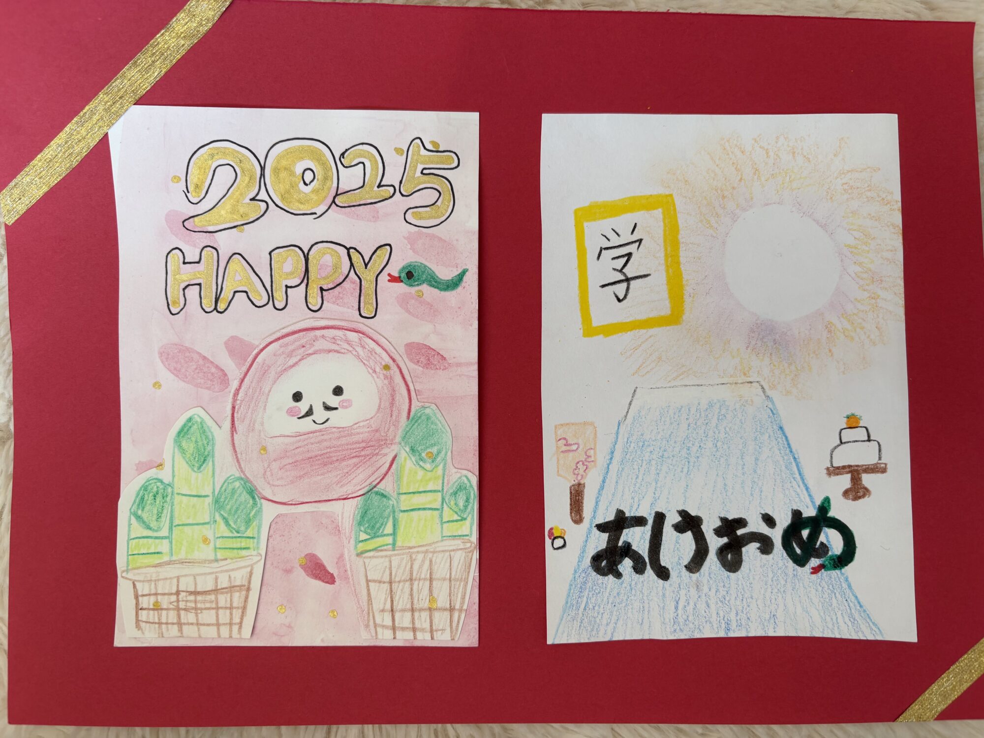 きょうか先生 先生2024年12月21日 4:59 PM sakuraちゃん!レッスンにきてくれてありがとう☀️ レッスンで見せてもらった左のハガキ、あらためて見てもふんわりピンクがとってもきれい! 金色がよく合うね✨(がようしのふちに入れてる金色もいいかんじ〜!) 右のはがきも大人っぽくてカッコいい!お日様の色のまざりかたがうつくしいよ・・・・!! 『HAPPYに』勉強を頑張る、というのがまたステキですね☺️ 2025もどうぞよろしくおねがいいたします!🌄 ログインして返信する ↓