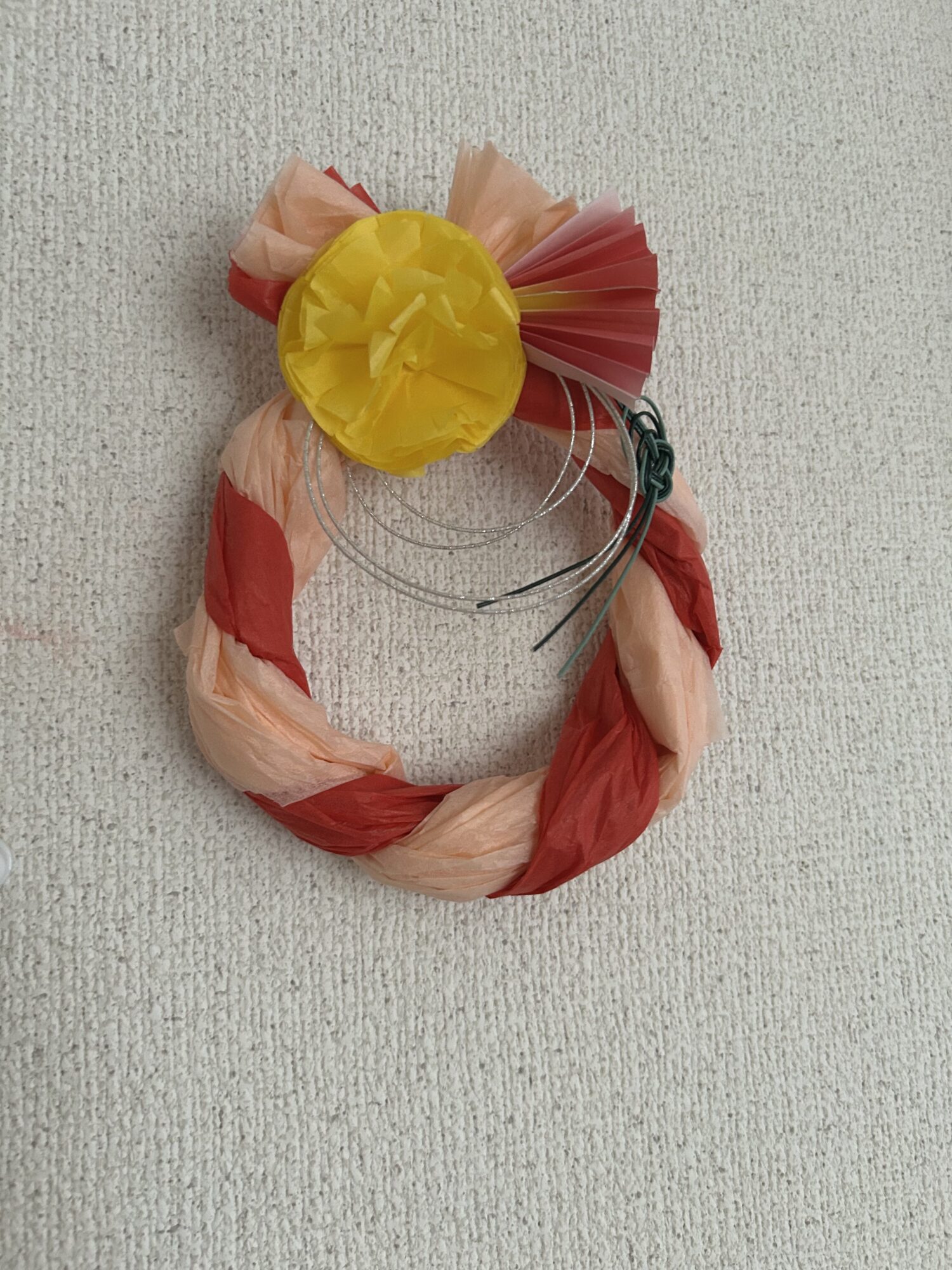 お花紙で作ったのかな?赤とピンクの紙が交差する感じがおしゃれでいいですね〜!