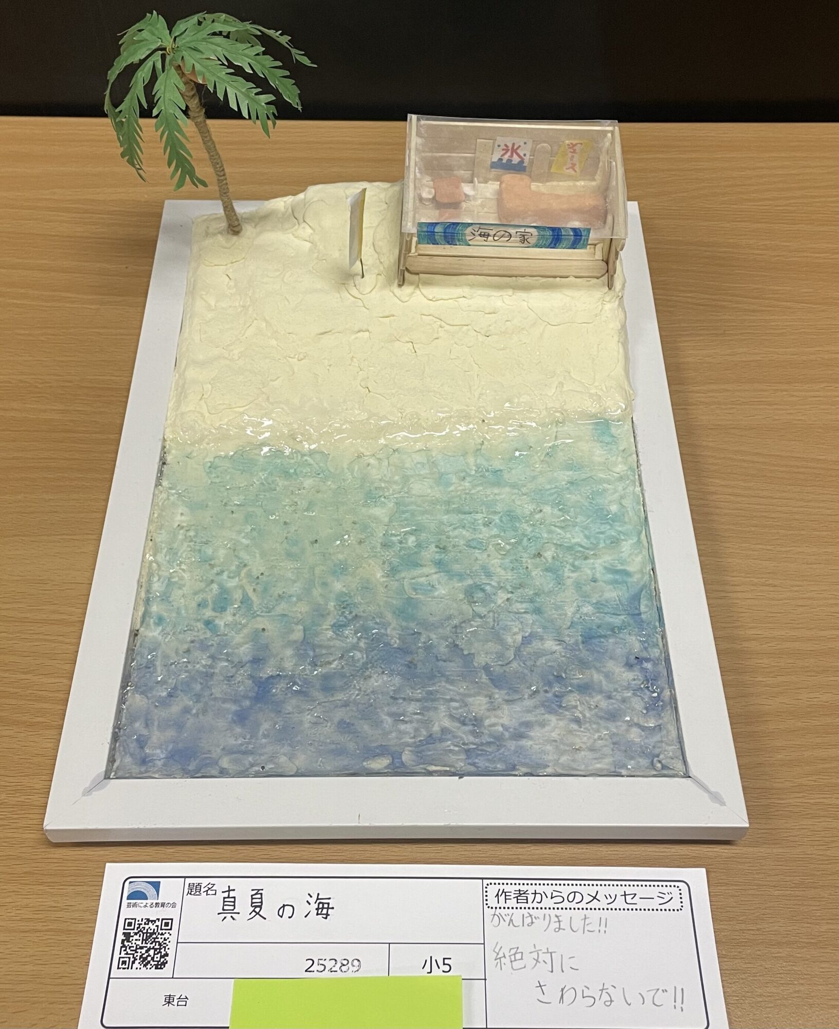 海の水色と青が綺麗で、海の家とか旗とかが工夫してあって、凄いなと思いました!