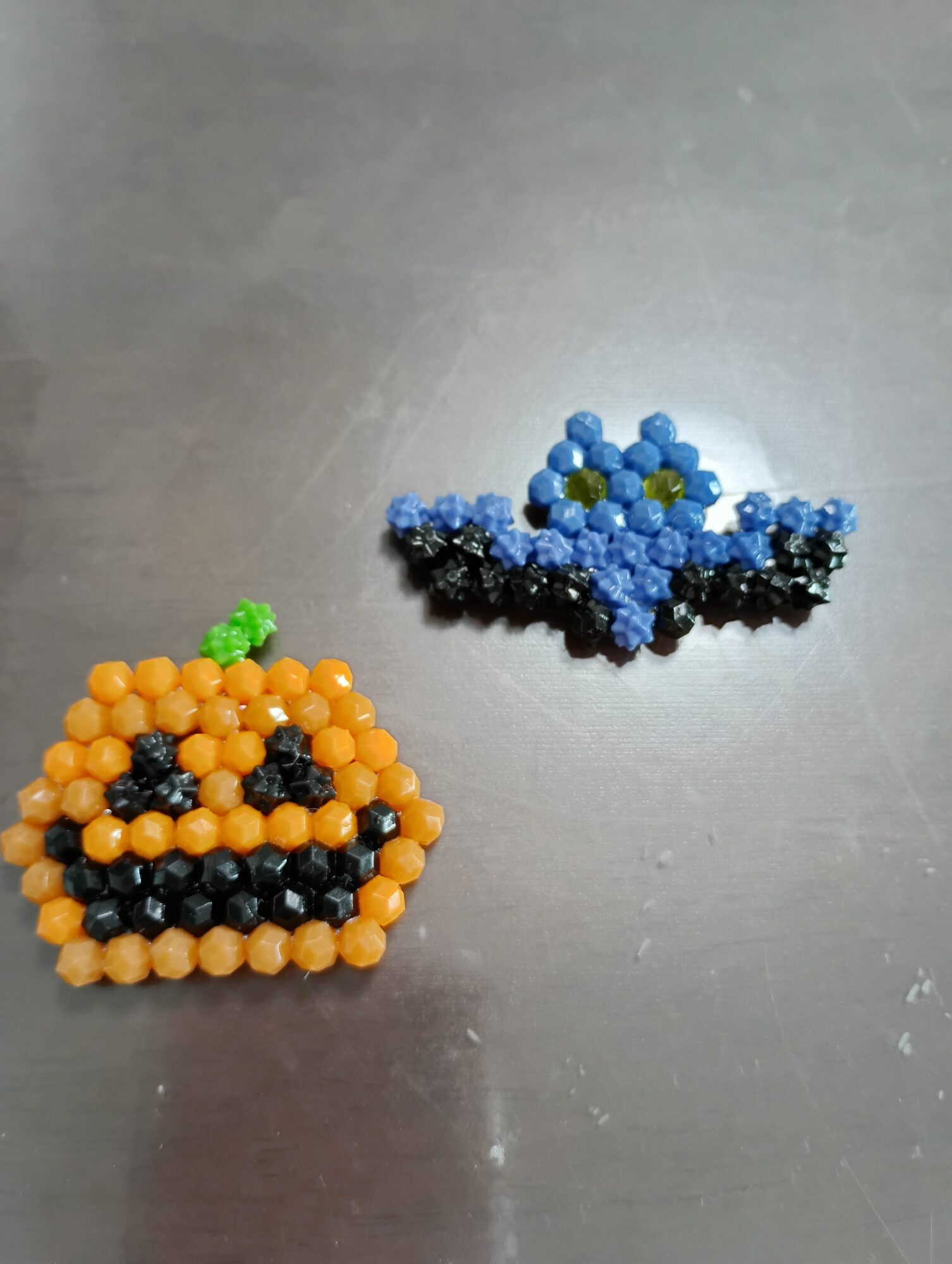 細かいビーズを使って、コウモリとカボチャをよく表現できているなと思いました☺️