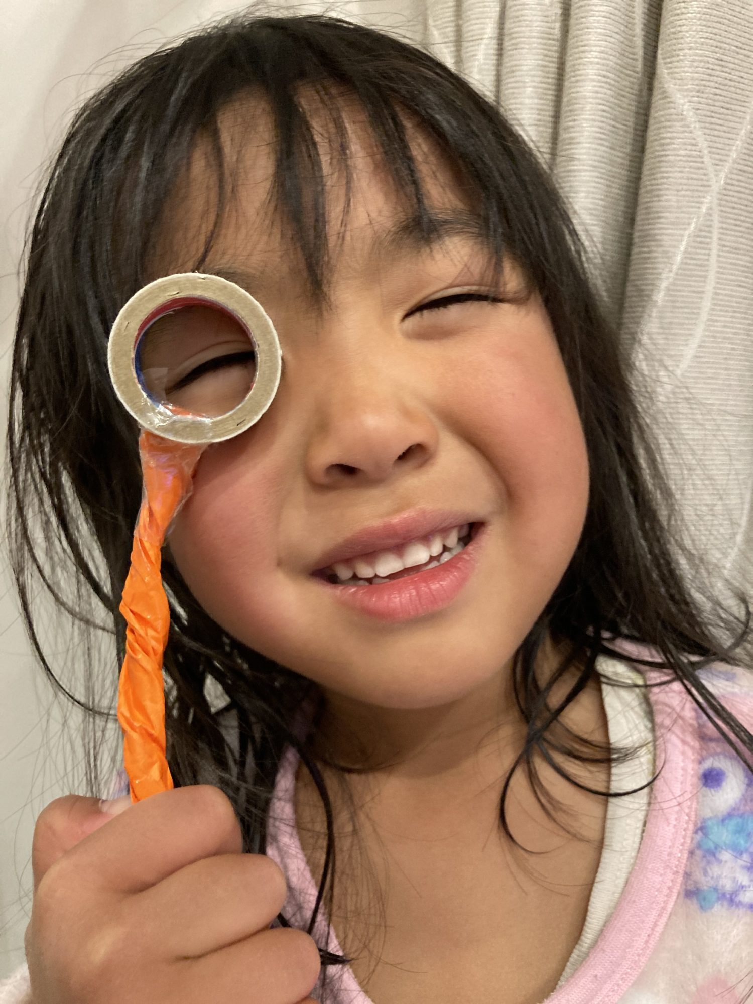 なるほど! あのセロハンテープのわっかが、はんにんのあしあとをみつけるルーペになるとは!!! びっくり