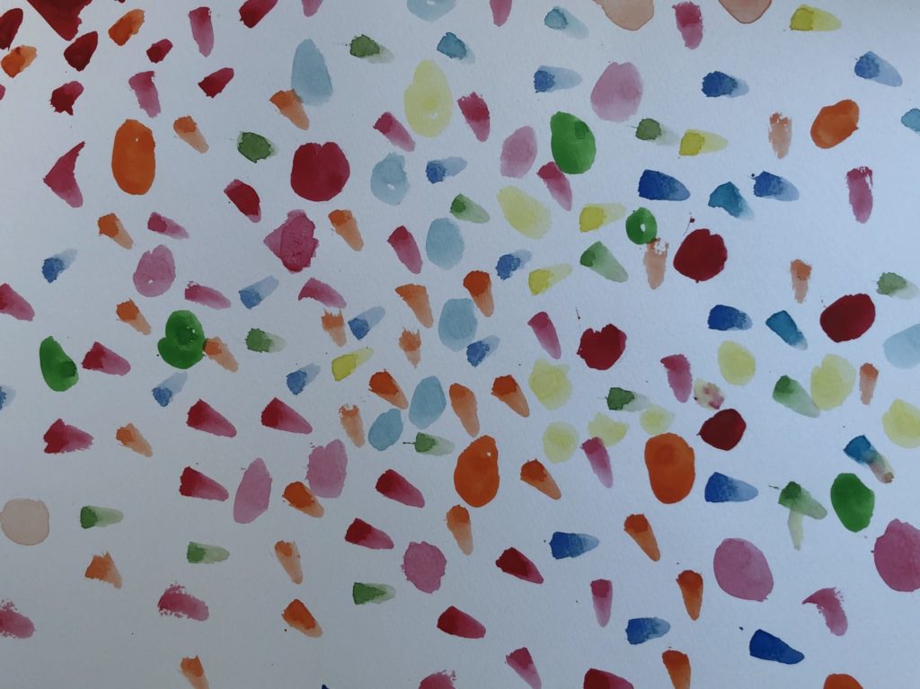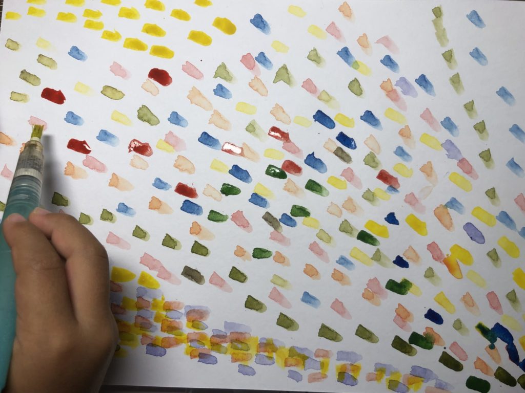 たくさんの点は、足あとに見えたり、上から見た人に見えたり…