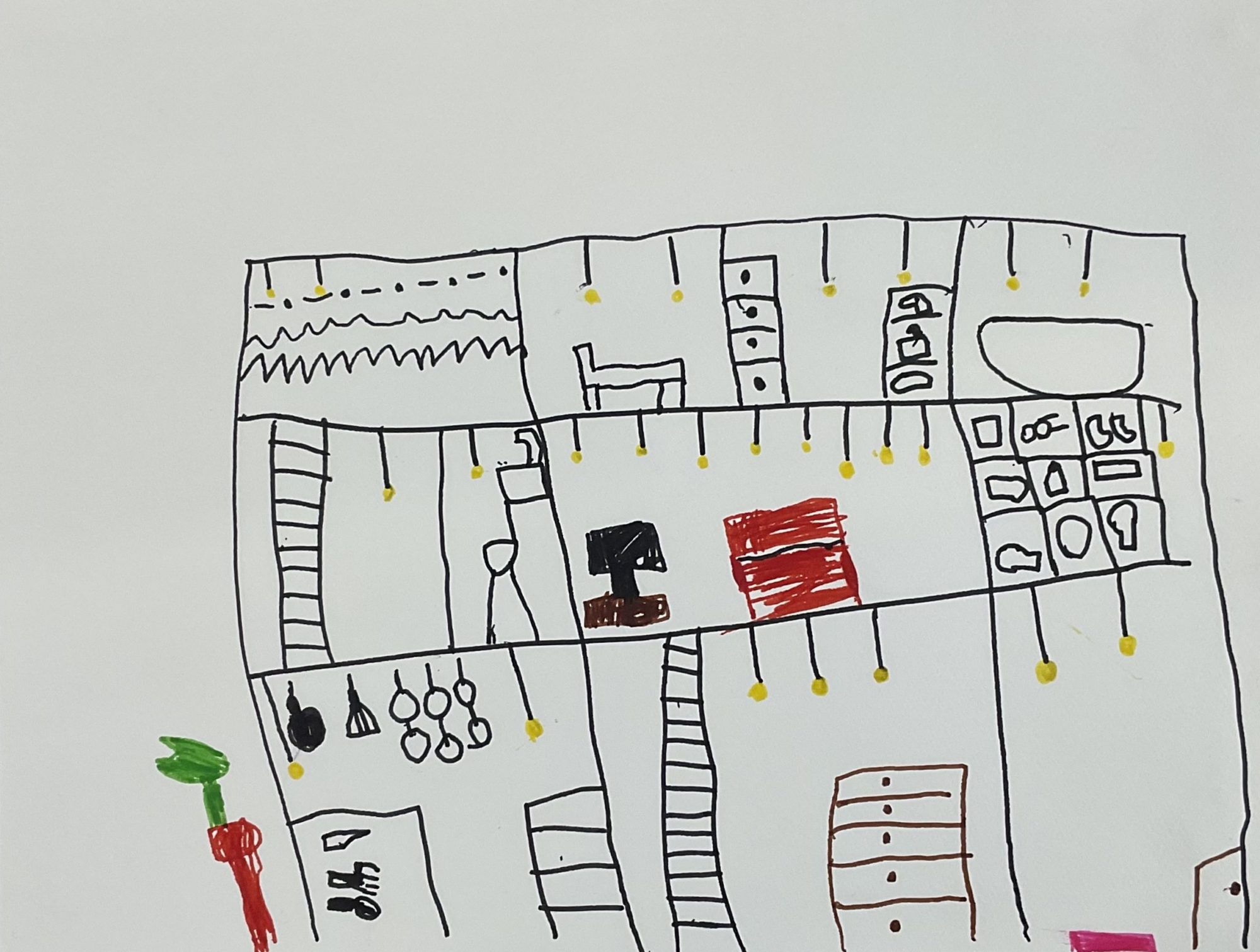 あかいポストがとってもすてきで、でんきもいっぱいあるから、おうちのなかが明るくていいね💡✨