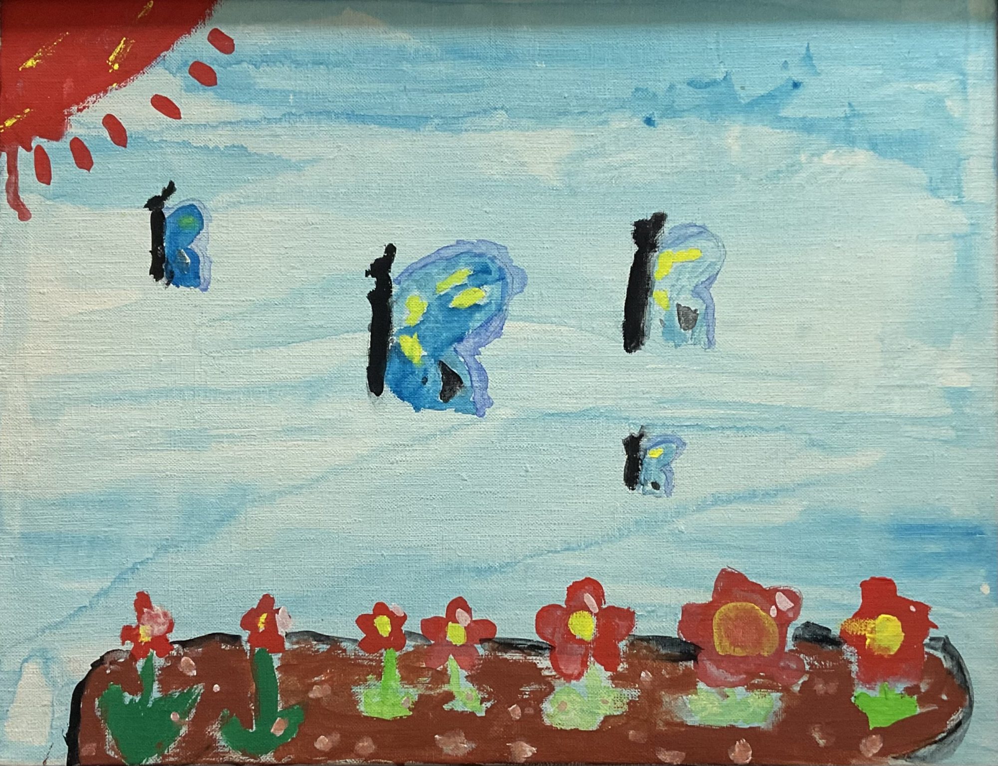 りこ先生に ひさしぶりに、メセージをきいたから、うれしかっだよ。ありがとう。ちょうちょのポイントは、かだんのとか、ちょうちょです。つちといしょにある、ちいさな、いしを、かくのにほそい、ふでをつかいました。😓りこせんせいだいすきだよはなれても、ずっとね。😊
