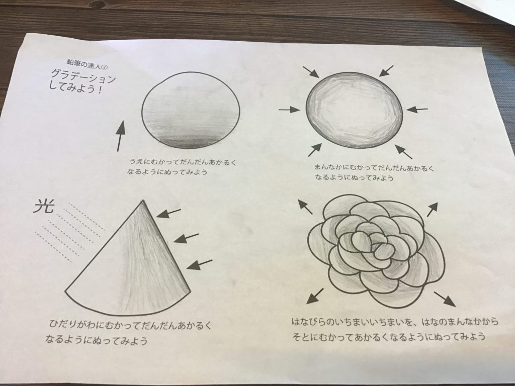 グラデーションが上手くなっねー。鉛筆でいろんな色を出せるようになると、本物みたいに描けるようになるよー。沢山描いてみてね。